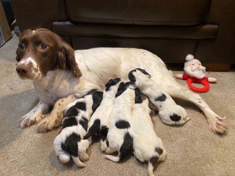 We have a beautiful litter of English springer spaniel pups ready to go to their forever homes. Pups have the most wonderful personalities and will make the perfect addition to all families.