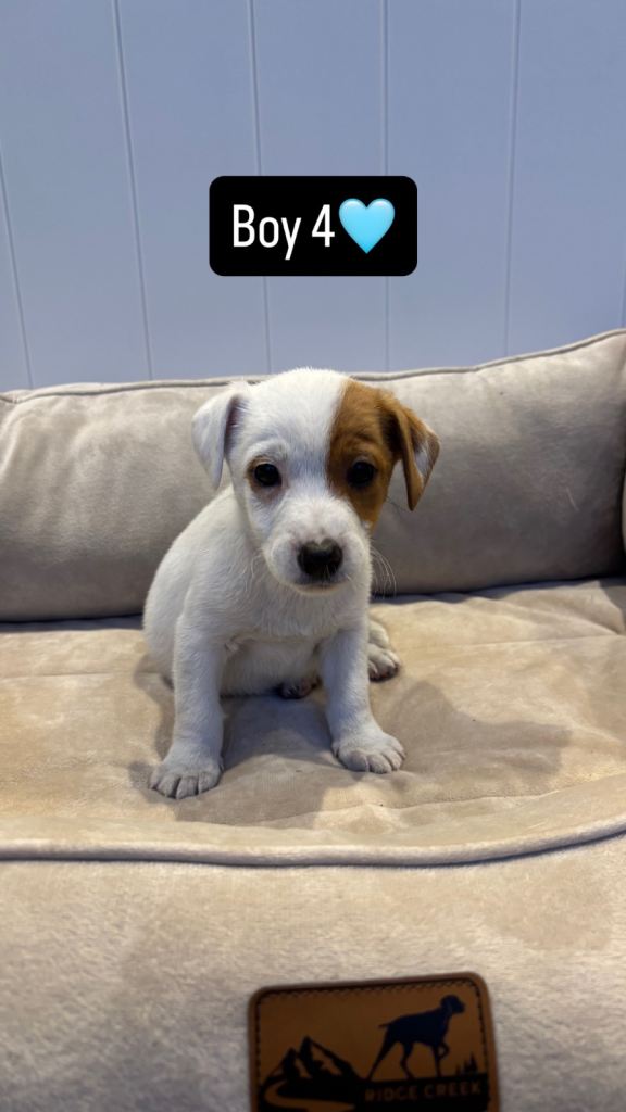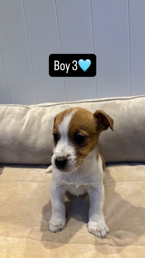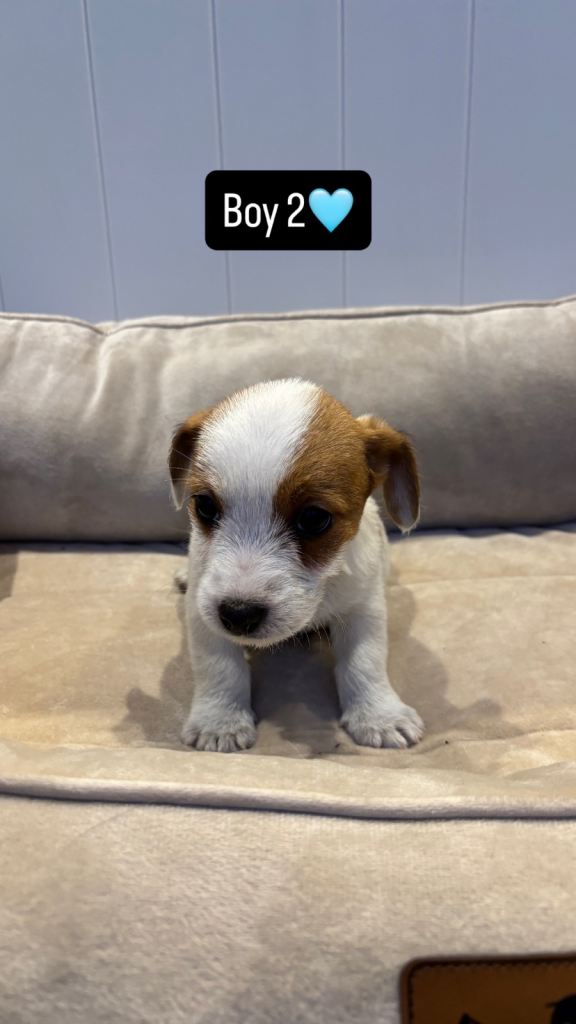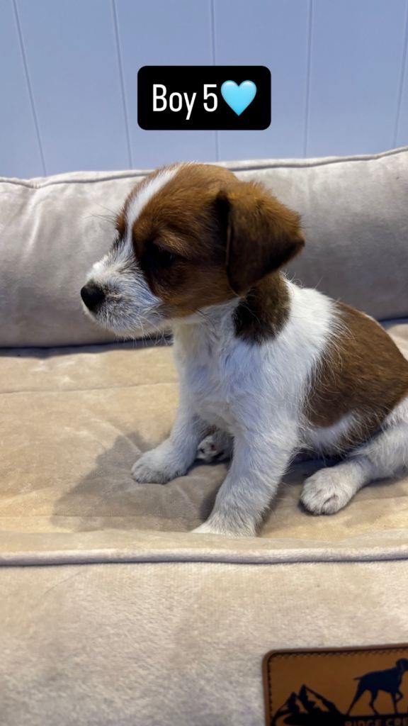 We are delighted to offer a beautiful litter of traditional small-type red and white Jack Russell puppies, born on 27/12/2025.