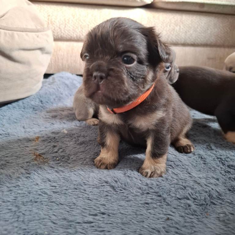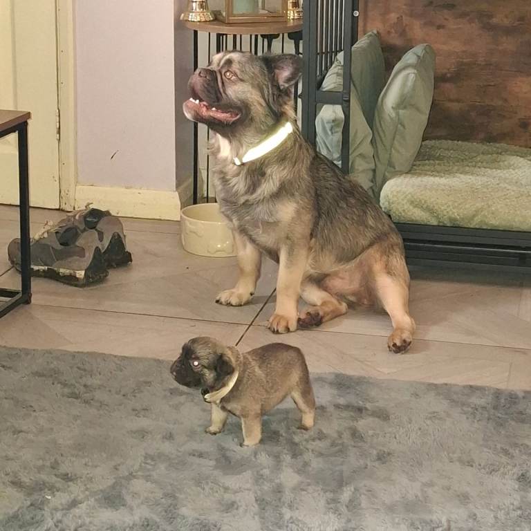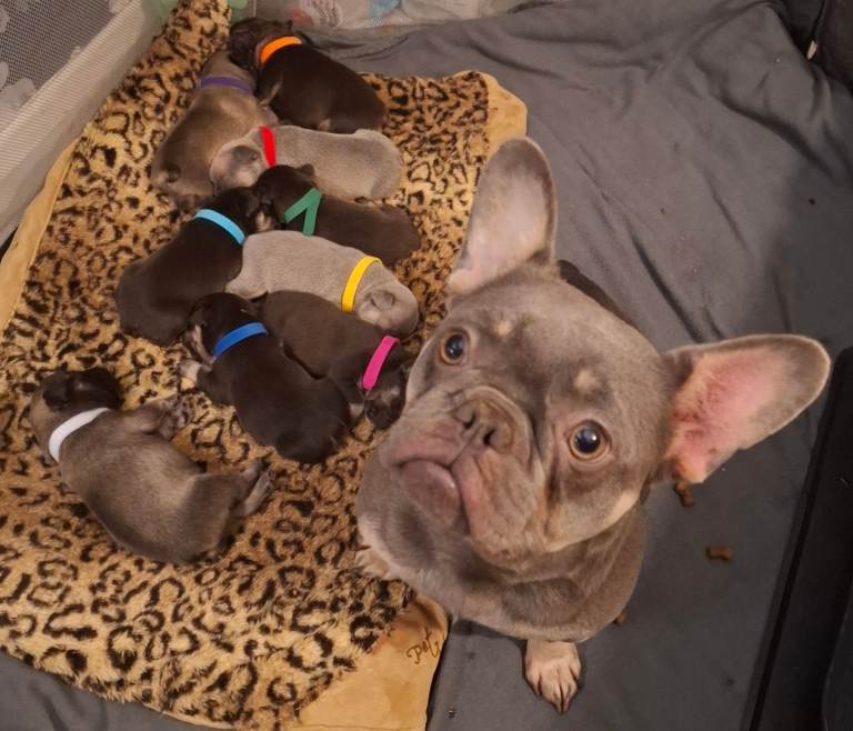 We have a stunning litter of 9 visual fluffy Frenchie puppies, naturally born and raised in our loving family home.