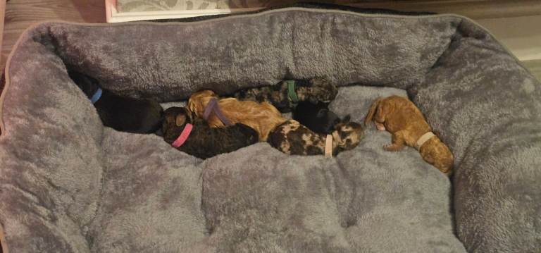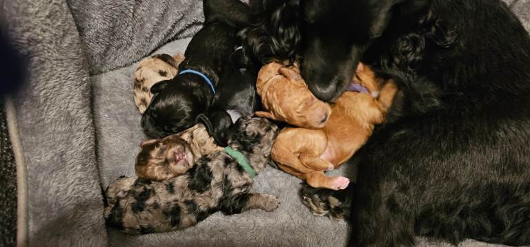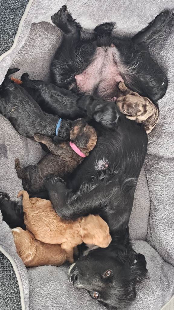 F1 Cockapoo pup for sale. We are looking for a forever home for this gorgeous pups. Pups have all fed well from mum and are now eating puppy kibble and drinking water. All pups are used to house hold noise, they love the hoover and have been brought up with 4 young children so are amazing with children and love their cuddles. Mum Luna is a working cocker spaniel she is the best family pet who adores every human and animal she meets. Dad is a miniature poodle with exactly the same temperament as mum. Last few pics of mum and dad.