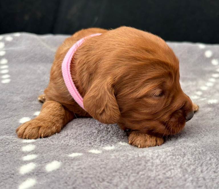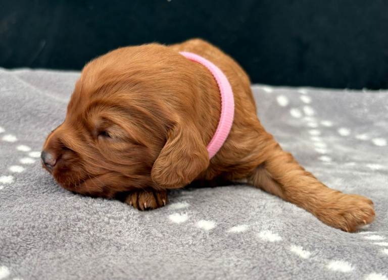 We are proud to offer our stunning litter of red Cockerpoo puppies, raised with love and care in our busy family home.