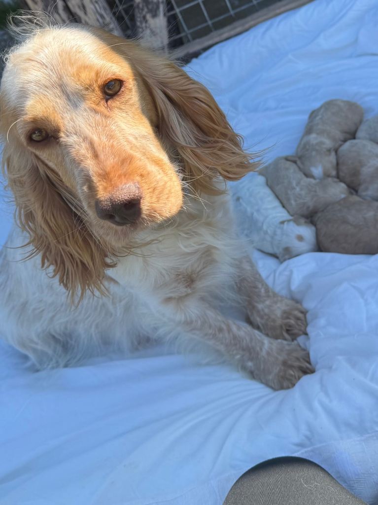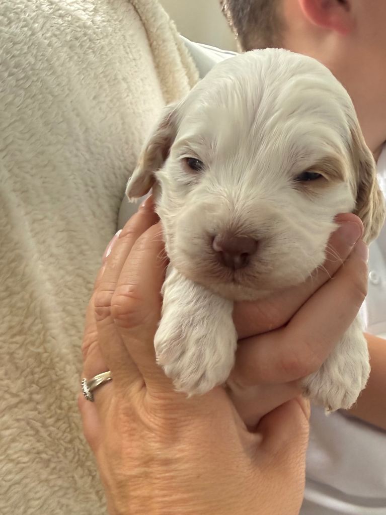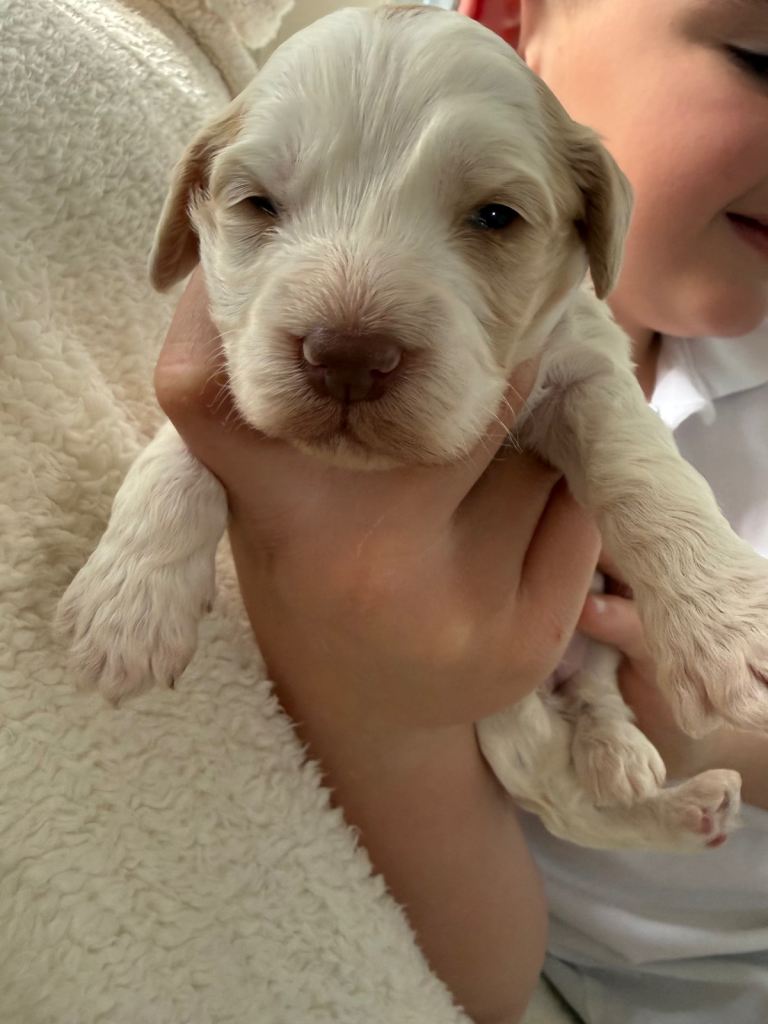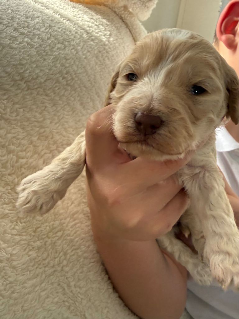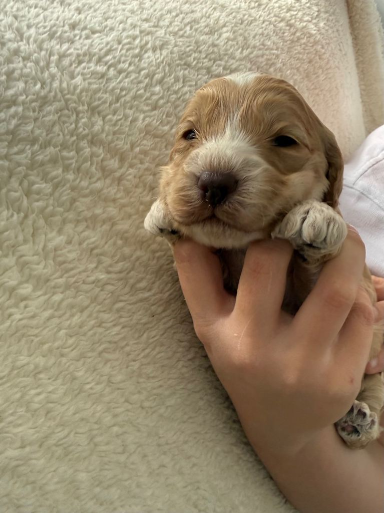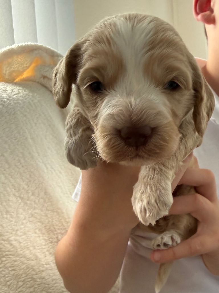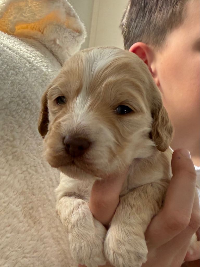 Hi there my beautiful girl Daisy have had a amazing bundle off joys she’s had 8 all together 6 females and 2 males , she’s a show type cocker spaniel and dad is a white poodle miniature,