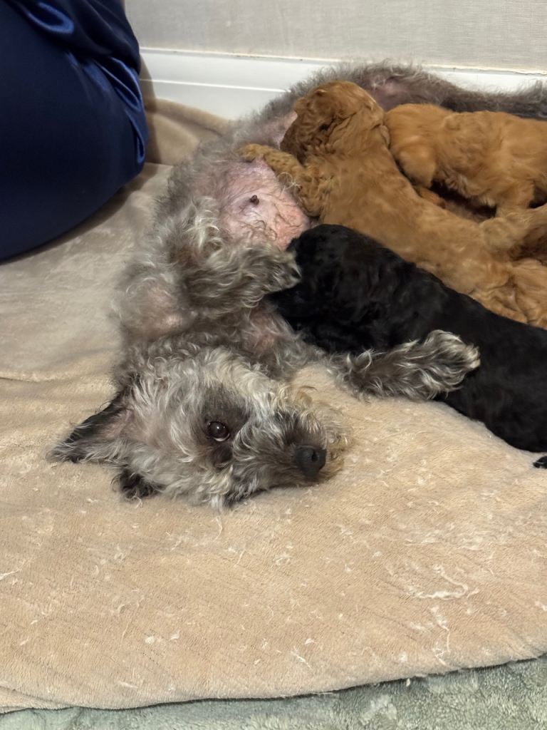 Can be seen with Mum who is our extremely loved family dog who has an excellent temperament, I have photos of Dad who is a popular stud in demand with so many people going back for further planned litters, he has been health checked and I have a copy of his paperwork that can be seen upon request.