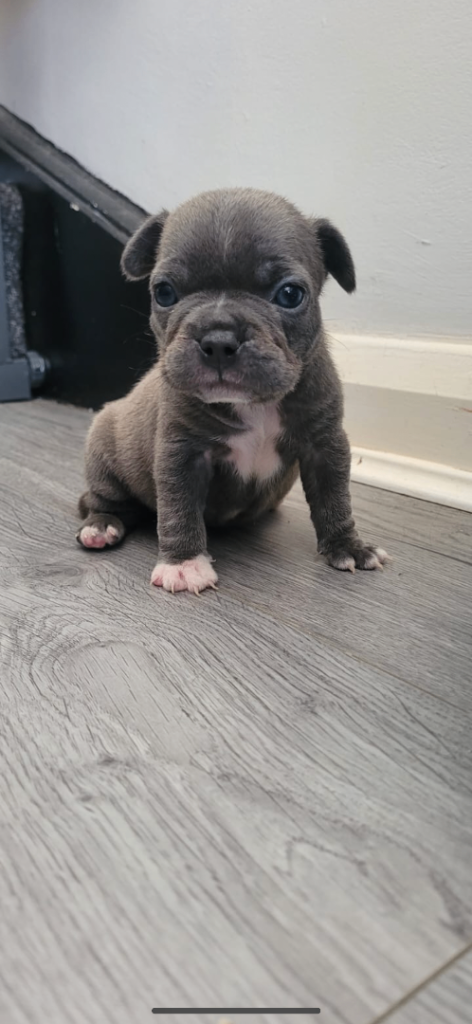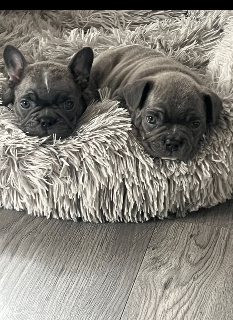 2 female frenchies for sale brindle breed one with the white paw is called socks the other one is precious I want them to go to a lovely family I won’t accept them going with someone I don’t feel comfortable with I am taking a £100 depsit they are lovely puppies will break my heart when they go they will of had all vaccine and microchiped they will be ready to leave from the 19th of may £800 each pup no time wasters