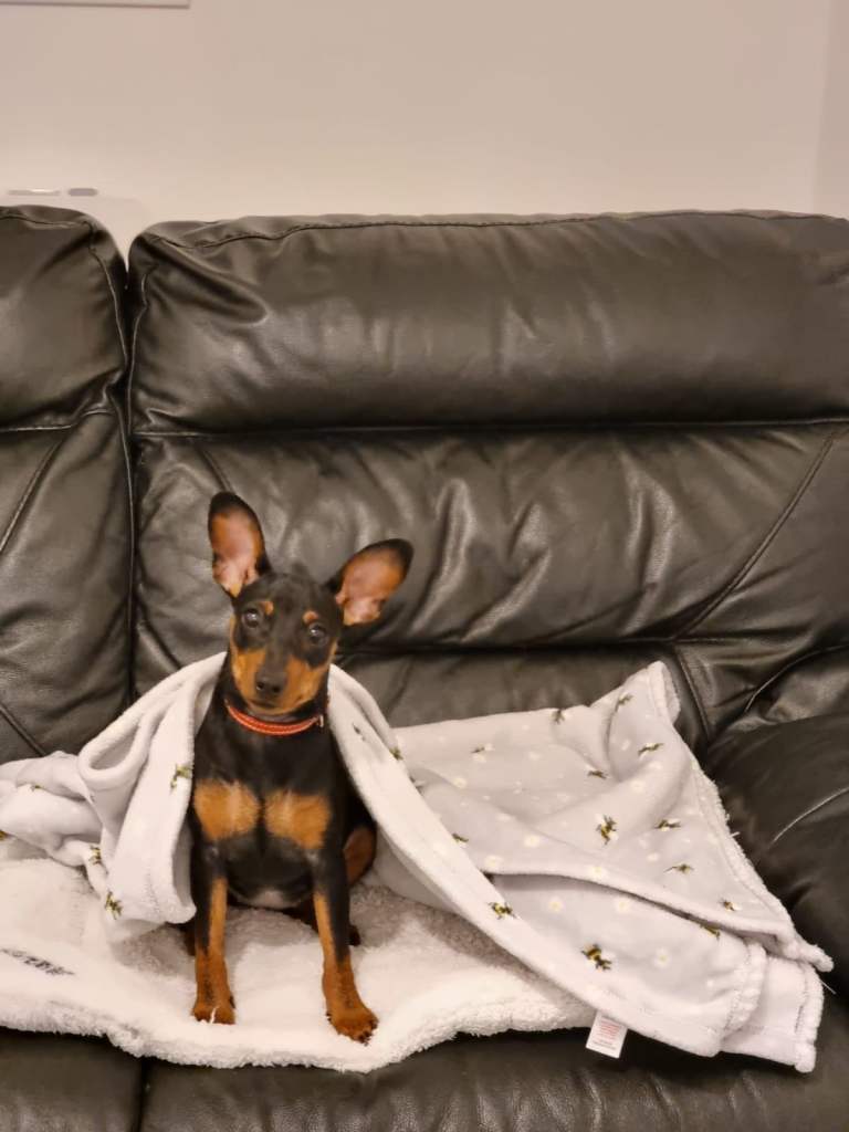 PLEASE NOTE: This is a FEMALE Miniature Pinscher – 18 Months. I am unable to change the title.