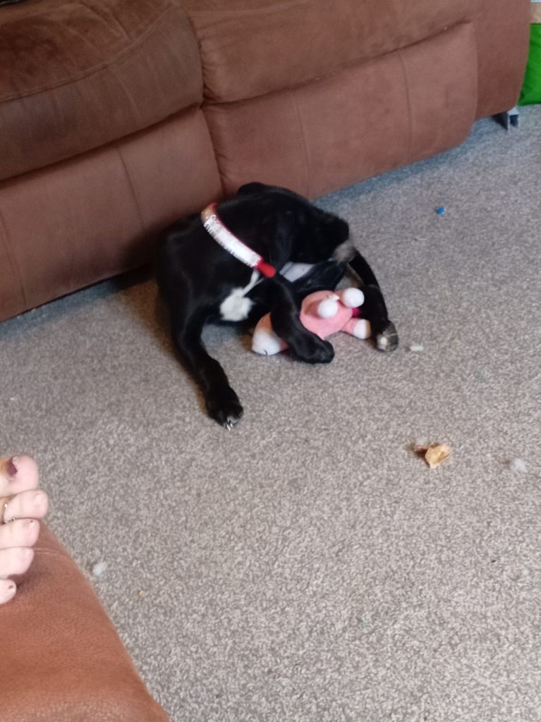 Female lurcher cross corso , 12 weeks old , microchipped flead wormed and first injection , very loving , loves attention and cuddles