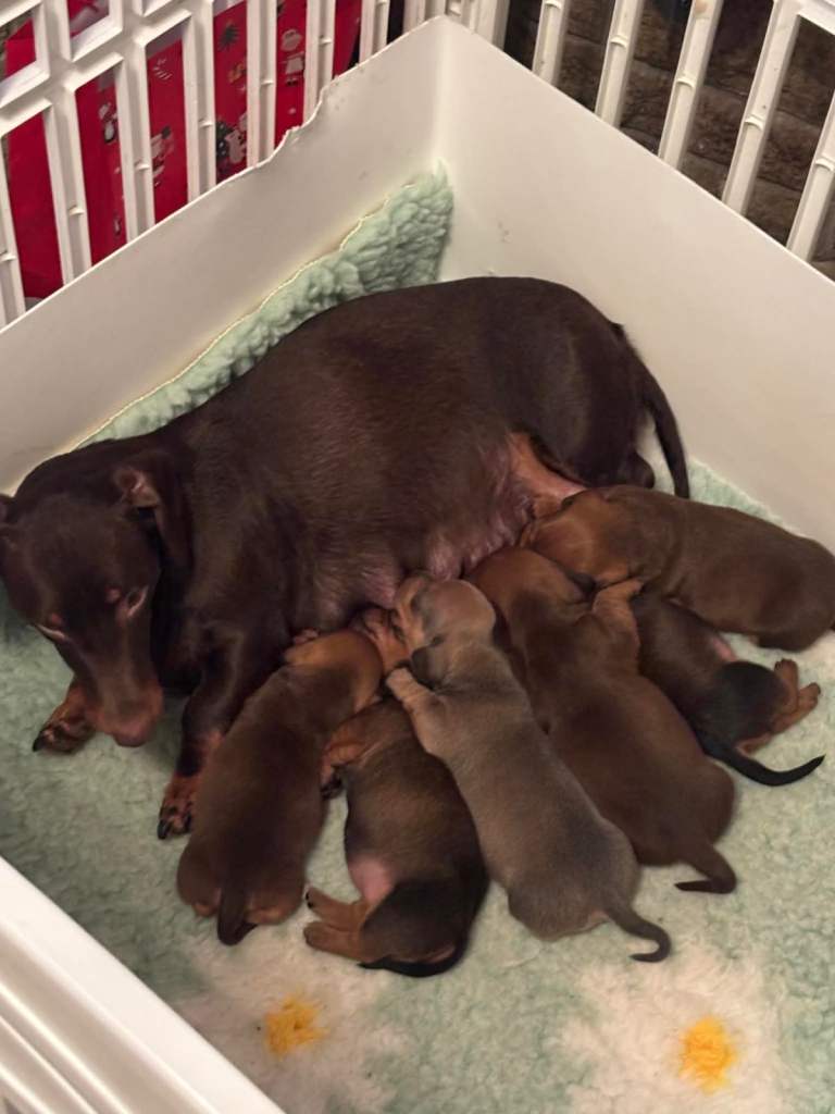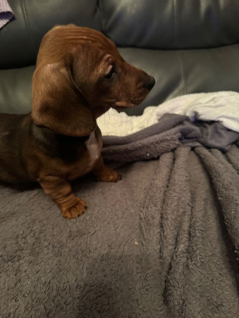 🐾 Gorgeous Dachshund Puppies Available 🐾 We have 4 beautiful chocolate based red mix Dachshund puppies looking for their forever homes — 2 girls and 2 boys remaining. ✨ Details: • Ready to leave: ready to go • Will be fully vet checked • First vaccinations given • Microchipped • Wormed and flea treated up to date 🐶 Parents: • Mum: Chocolate Dachshund, carries piebald • Dad: Stud red chocolate piebald Dachshund • Both parents have lovely temperaments 💖 Puppies are being raised in a loving home environment and will be well socialised. 📩 Serious enquiries only, please. Happy to answer any questions and arrange viewings.
