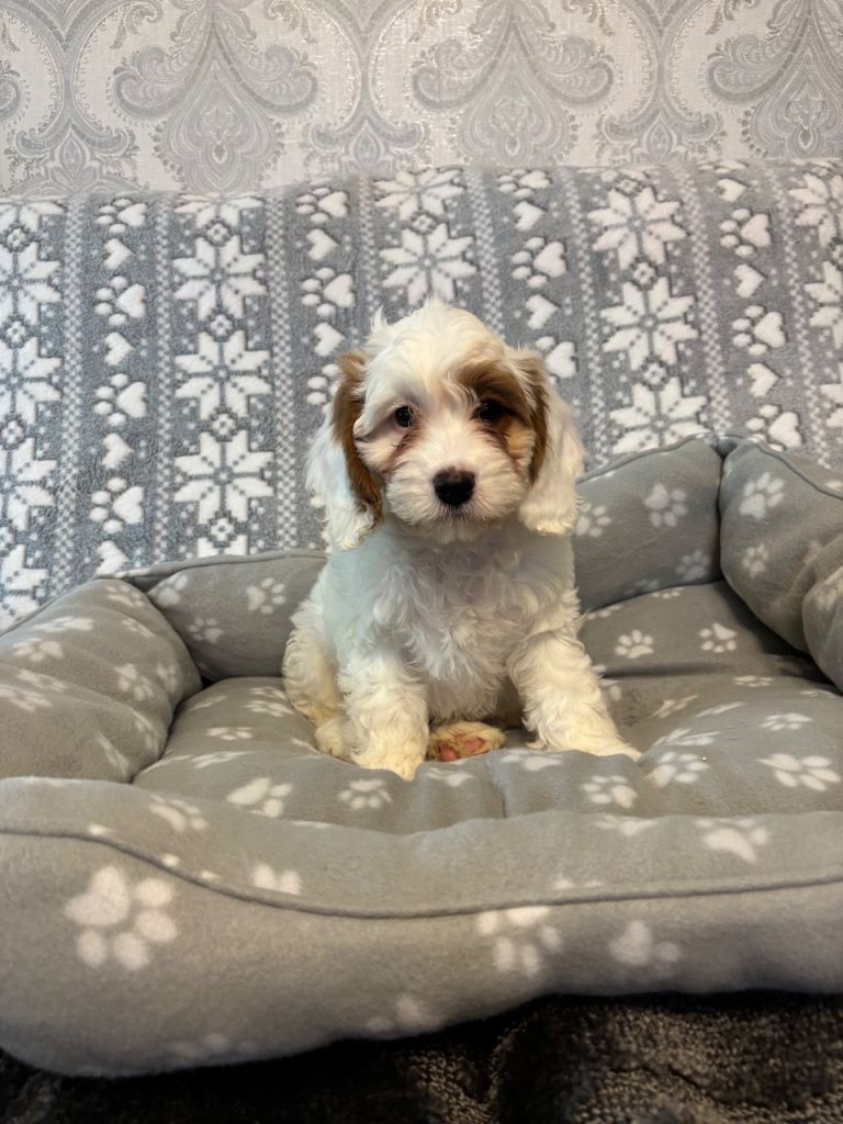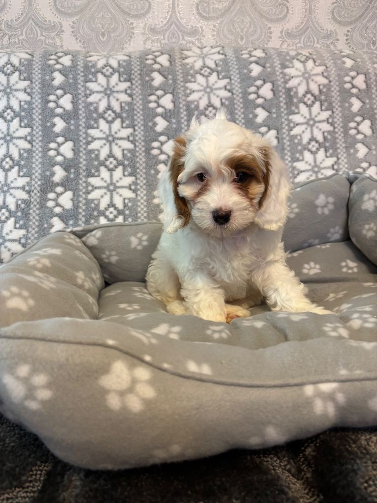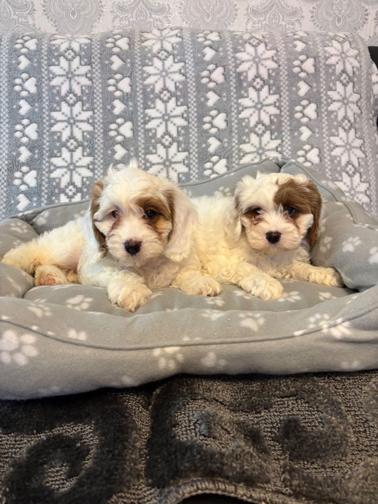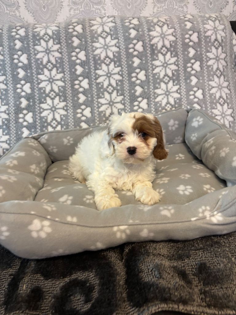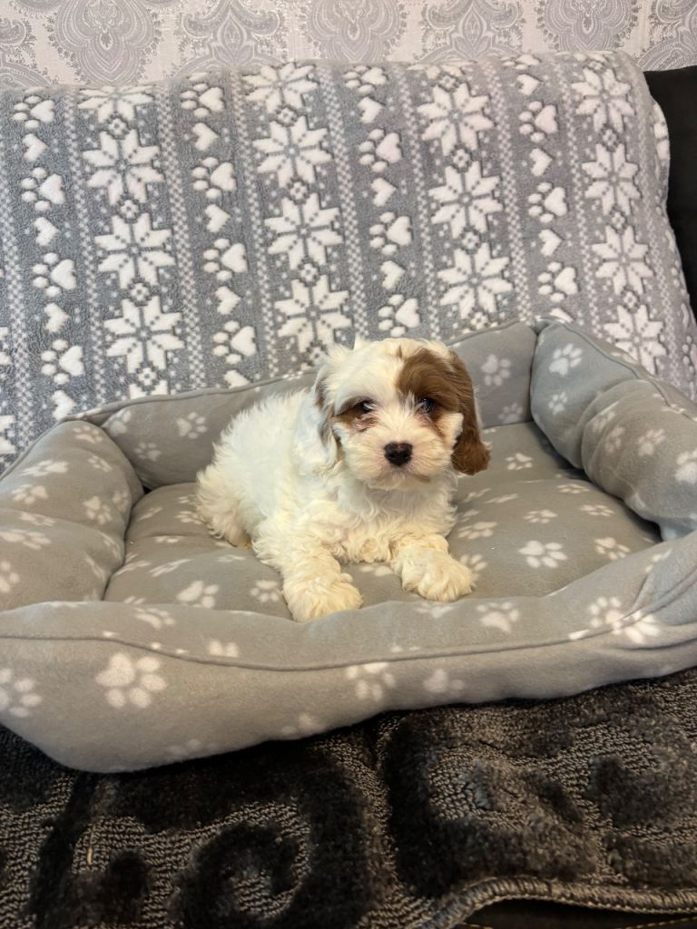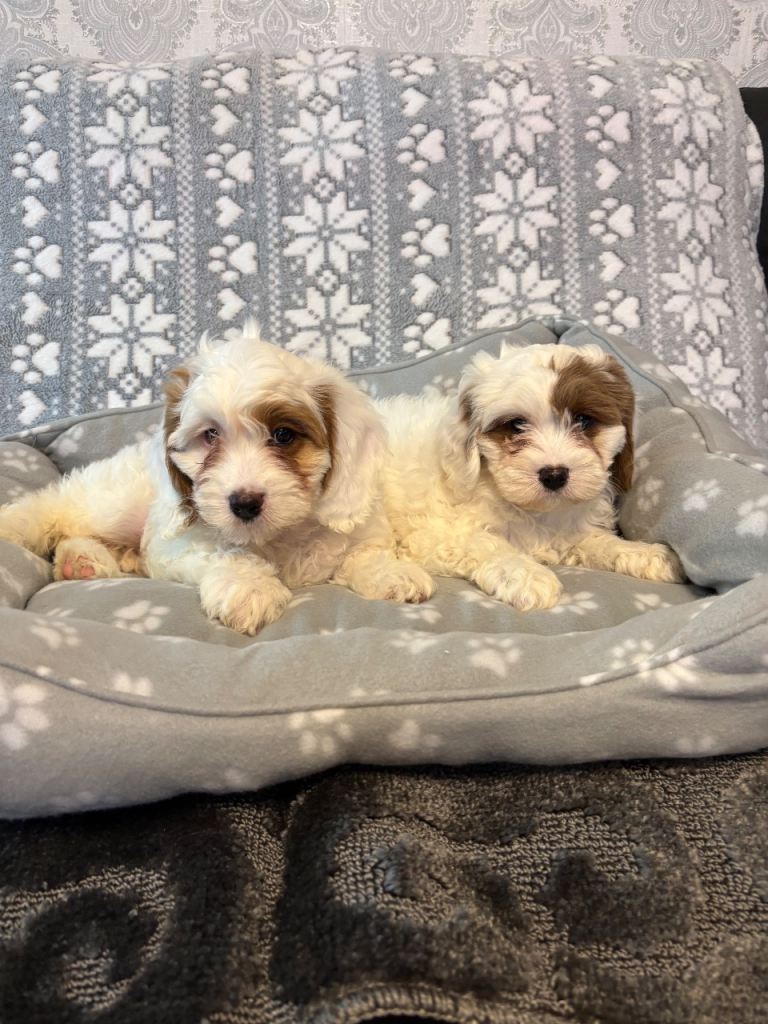 Fluffy cavapoo puppies available for their forever new homes now, boy and girl available, 8 weeks old, fluffy curly non cast hypoallergenic coats with beautiful markings, they have been to the vets for their full health check and vaccination, they are microchipped for their new owners, home reared around young children and used to being handled, loving playful temperaments, good homes only please