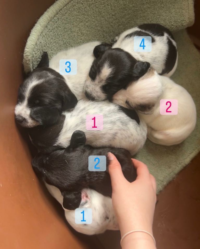 four beautiful parson Jack Russells three boys one girl remaining puppies and mum are doing extremely well mum she’s our family pet she’s very friendly and kind. Good with kids and other dogs. Dad is a top notch pedigree Jack Russell with a lovely temperament good with kids and dogs too. puppies will be micro chipped first vaccinations, wormed flead for more info pls call 📞 or text