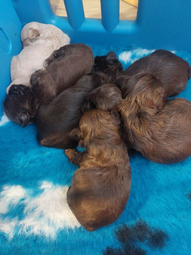 We have for sale a stunning litter of shihtsu impartial pups 0 e chocolate boy 4 chocolate girls and one cream girl
