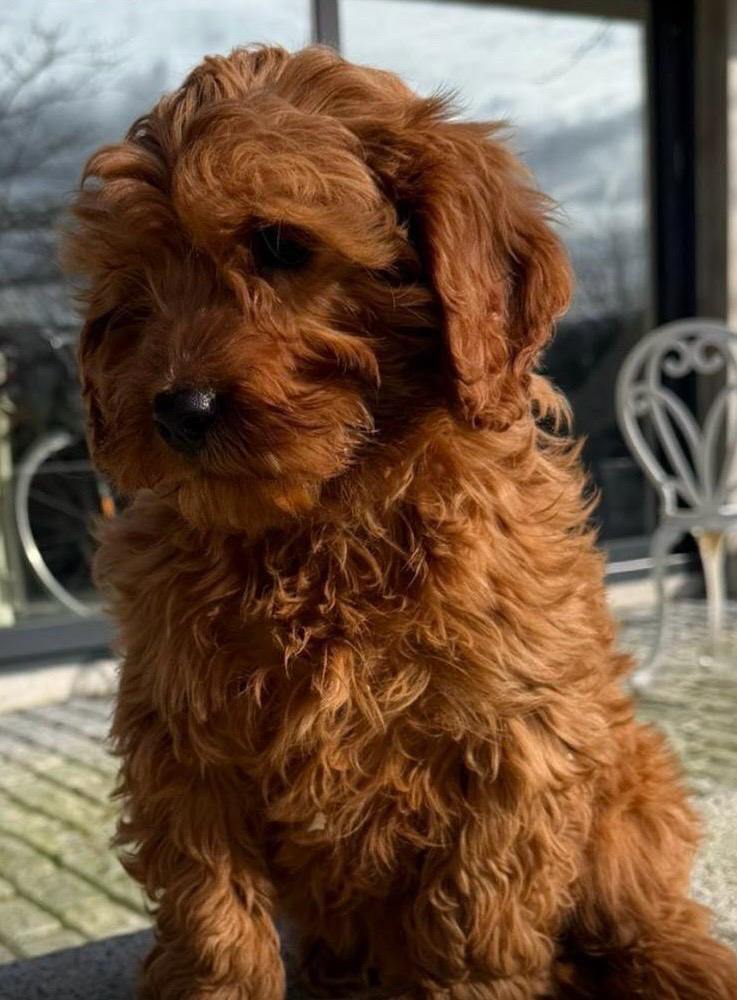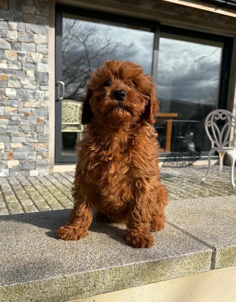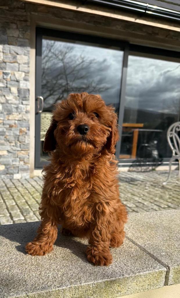 The best you can get! First generation cross, with this beautiful ruby red Cavalier, King Charles as a mum and this handsome Fox Red Toy Poodle as a Dad.These gorgeous pups are a fine example of their breed.Extremely popular due to their lovely temperaments and beautiful non-shed coats. Mum is are our much loved family pet who is the most affectionate chilled out dog with the best temperament you could wish for in a dog.