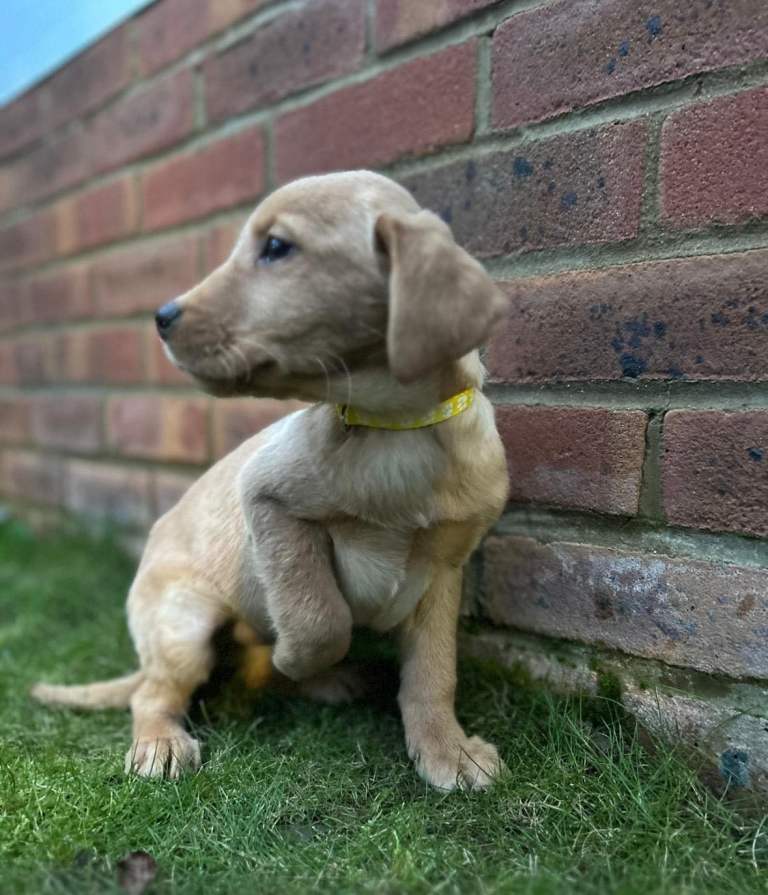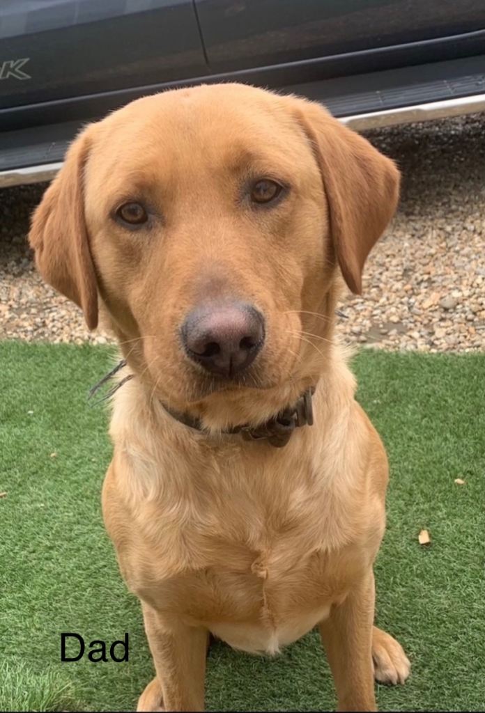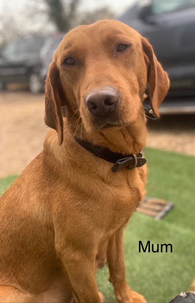 Mum is a very dark full pedigree fox red Labrador with working back ground.
