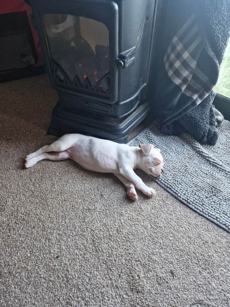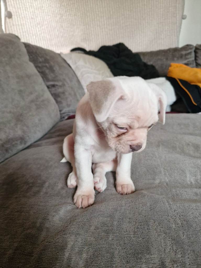 Beautiful 10 week old fully white with 1 very light brown ear and eye patch... she was the only pup in the litter shes a very special girl looking for her forever home... shes had all her vaccinations and is puppy pad trained she has bright blue eyes and is very active happy healthy pup. Her price is her price I wont be accepting any offers please feel free to call or message for more info