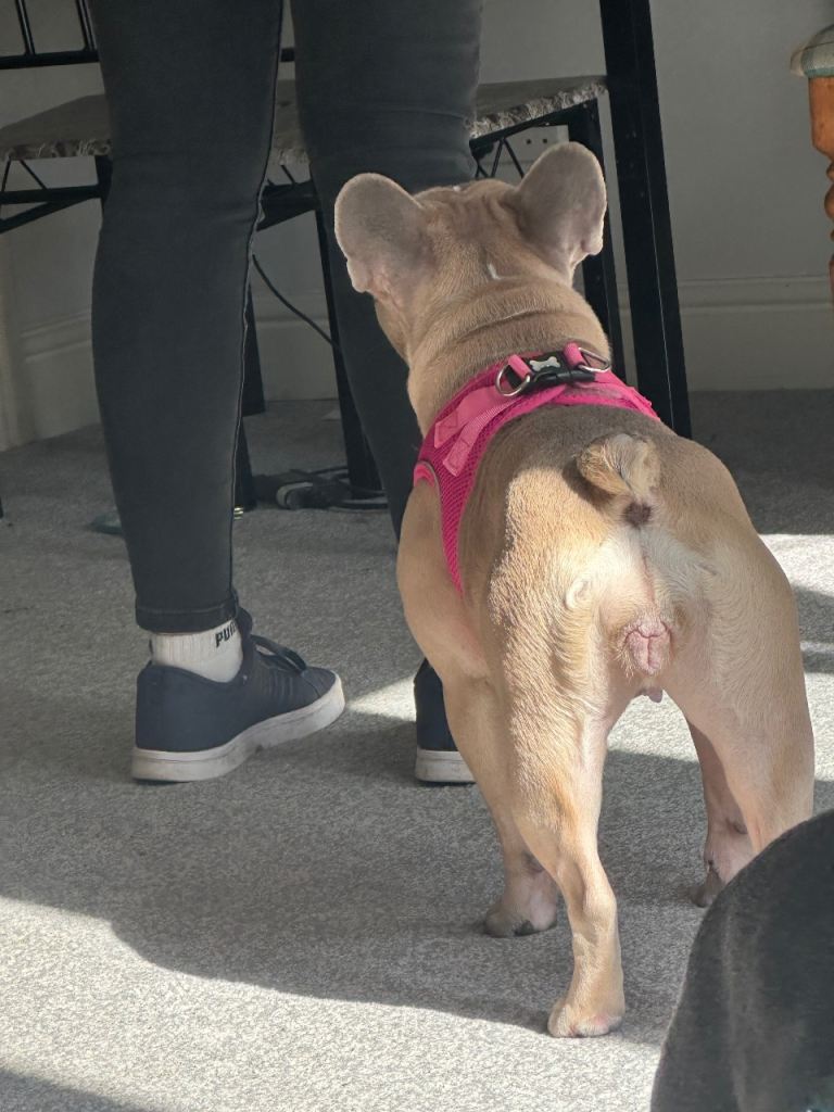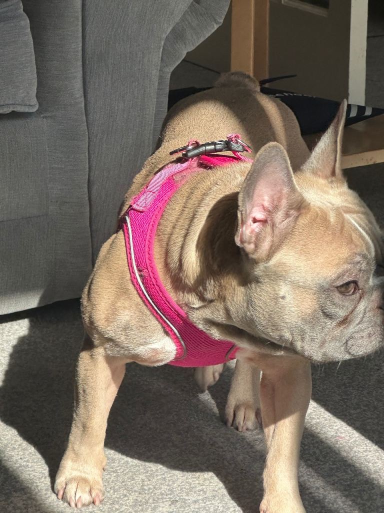 She loves the car and is house trained she yaps at you to go out comes with two leads harness bowls etc.
