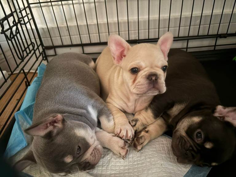 3 French bulldog puppies 2 girls 1 boy, ready for there forever homes from 7/01/2026. These wee guys have been reared in a family environment with kids, fantastic quality of the breed both parents are irish dogs and where bought here 3 months ago with my family. Call for more information thanks...
