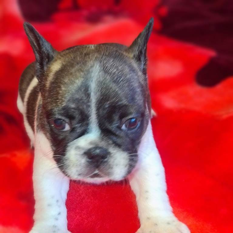 2girls (1 brindle, 1 pied ) and 1 boy (pied) ready from January 28th I am the owner of both parents who were imported from Poland(KC registered)