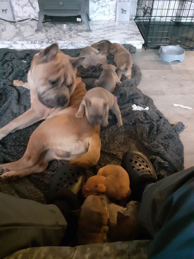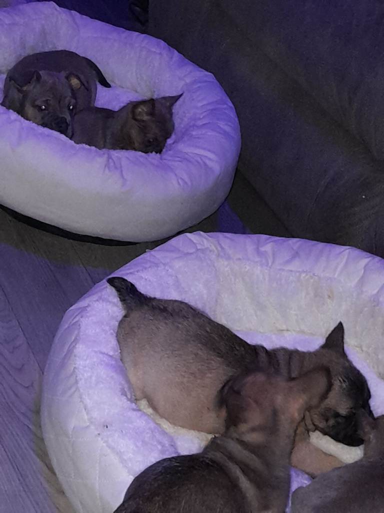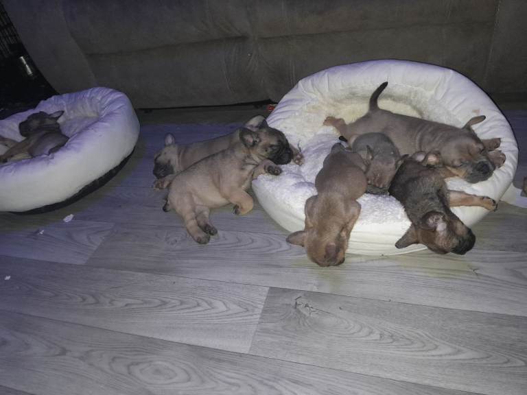 Price drop to 600 as its the time of the year i know people shot on cash but price is firm at 600 as they cost money in vet bills and food if u cant afford that dont message sorry but im not santa 🎅 8 weeks old won't be leaving until there fully vaccinated but can view and reserve your pup 6 girls to pick from 50 quid reserves ur puppy only good homes apply I'm not a breeder these are my dogs that had pups mum's full French bulldog dads half French bulldog half chow chow he's not a big dog and these pups will be tiny and look like frenchies and unusual one of a kind dogs
