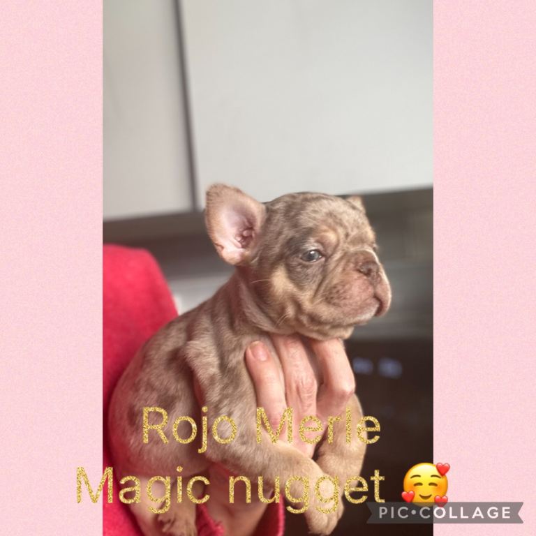 Beautiful littler of French bulldogs I have 2 new shade Merle platinum both female 1 Isabella Merle and 1 rojo Merle both boys all been brought up around children very loving and playful all are kc registered and will be microchipped 1st vaccine health checked wormed and flead before collection