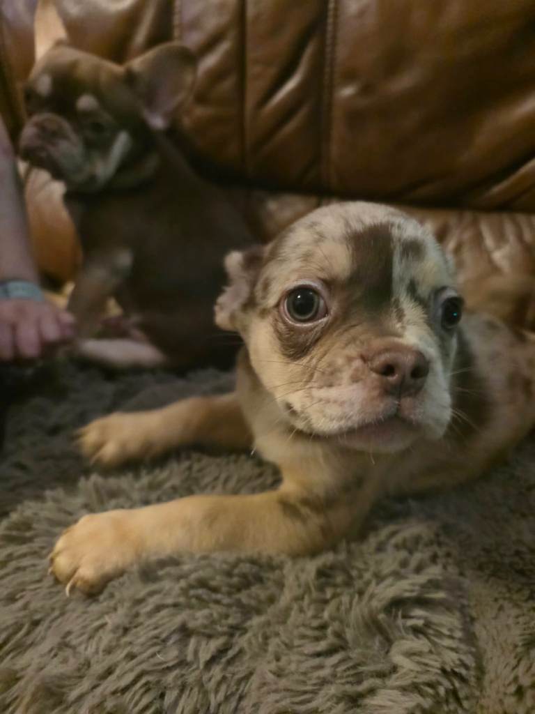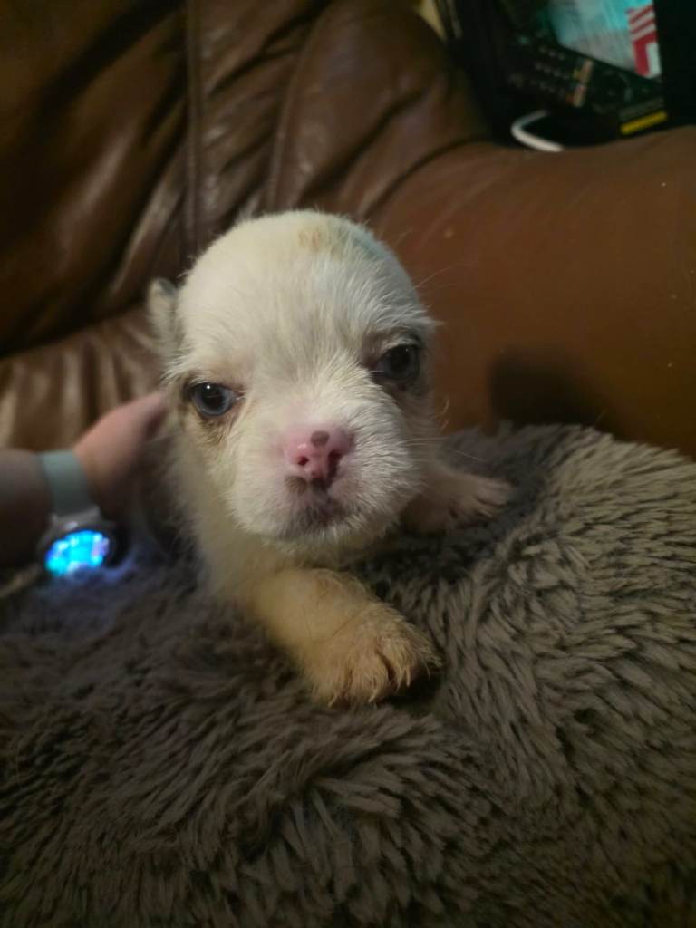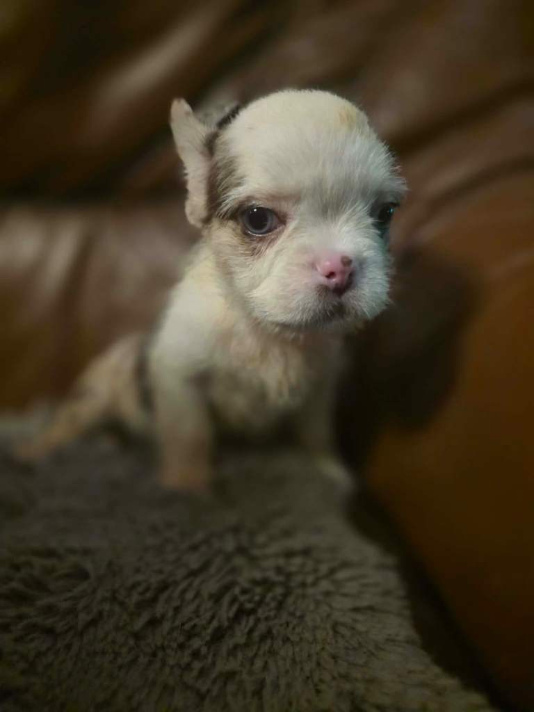 Boy 2 waffles fawn and white withe one blue eye and one green eye