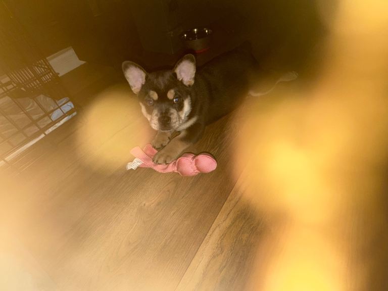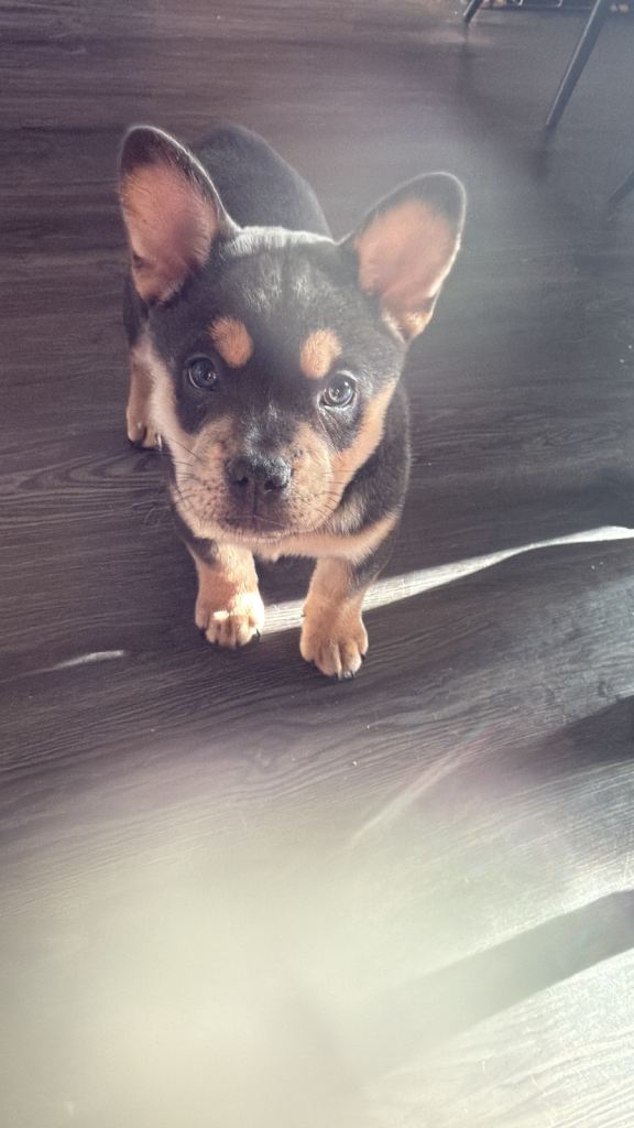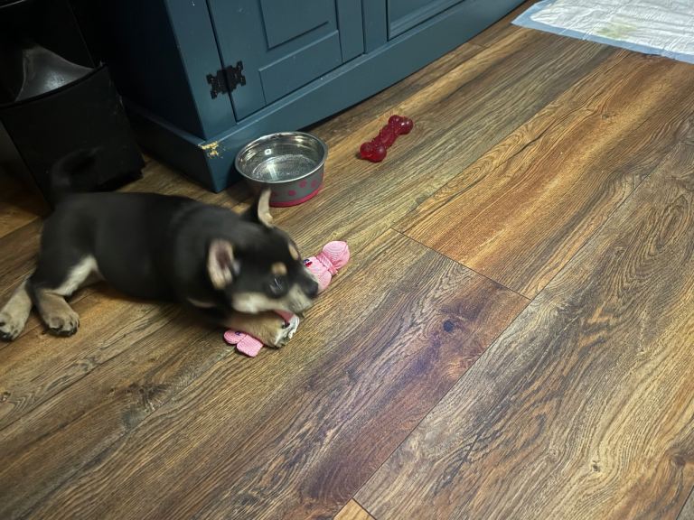 I have a puppie 11 weeks old. Having to rehome her as my Staffy is liking her to much and having to keep him locked up away from her. She is lovely very playful loves her food and toys.