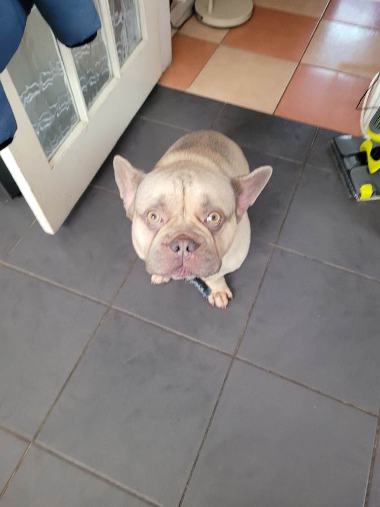 KC registered got all paperwork he is 4 fully toilet trained crate trained brilliant on the lead my grandson has allergies so unfortunately we have to rehome I can't say anything bad about him he has been brought up with children and is fine with other dogs and cats he is crate trained which he will come with