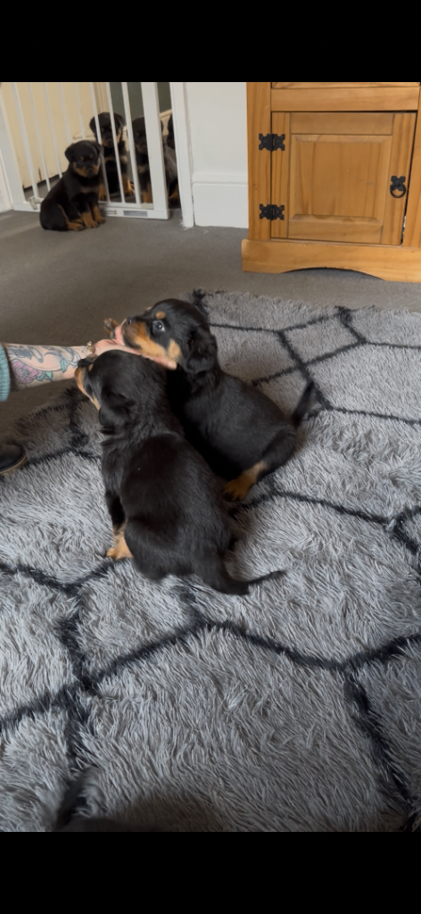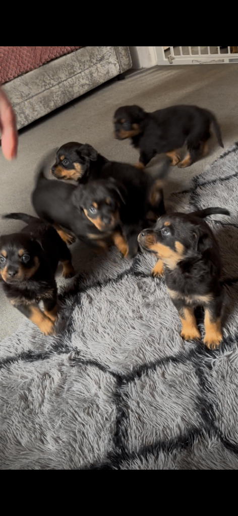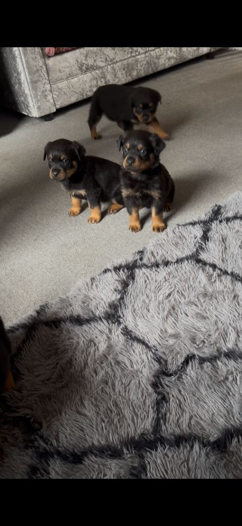 Outstanding litter of high quality German Rottweiler puppies 2 boys 2 girls left flead wormed up to date both parents are family pets for anymore information ring or text