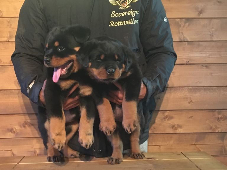 We are delighted to announce a profound litter of Rottweiler puppies that we planned over 5yrs ago! We are a hobby breeder for over 40yrs and breed full or big sized traditional Rottweilers with a clean face no wrinkles or modern short muzzles. We focus on temperament first then health and finish off with extreme beauty. Our puppies are carefully nurtured to live in a family home with kids and other animals as we live in the countryside and take that opportunity to socialise our Rotty with other farm animals as well as kids etc.