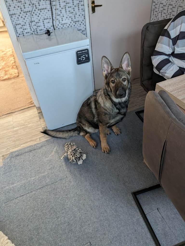 German shepherd his name is Kai he is 6 months old. Up to date with worming and fleas only selling as he is getting to strong when going for walks. He has a good temperament he is ok when he goes to the vets ha can't jump into big cars he has to bi lifted in and out or he will go on the back seat. He will come with leads bowls treats bed and food
