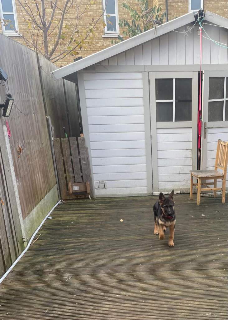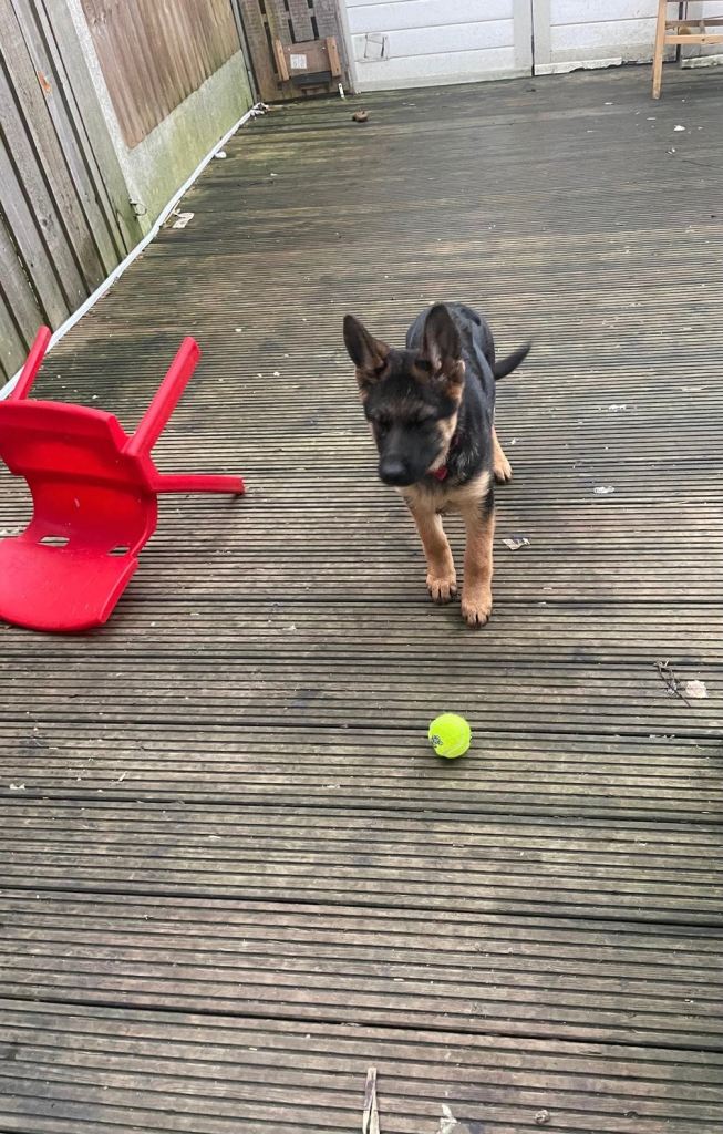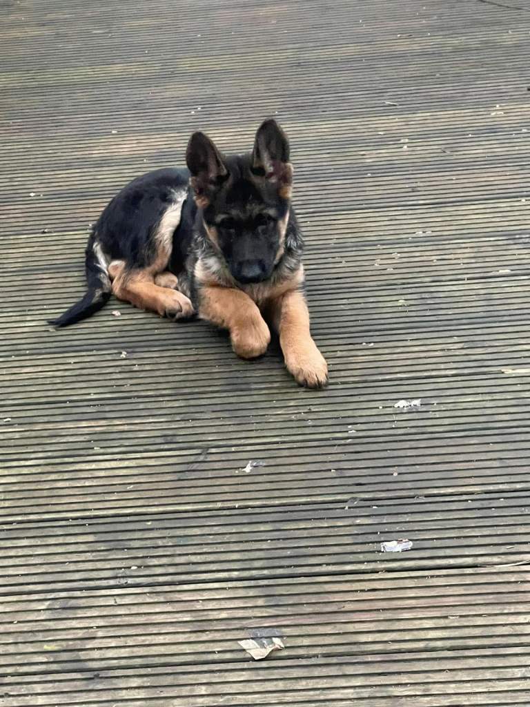 We have a German Shepard boy available, he is 4 months old, he has beautiful Black and Tan coat and he is very active.