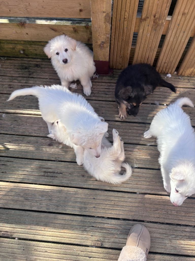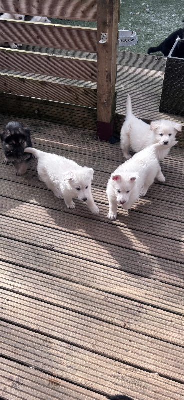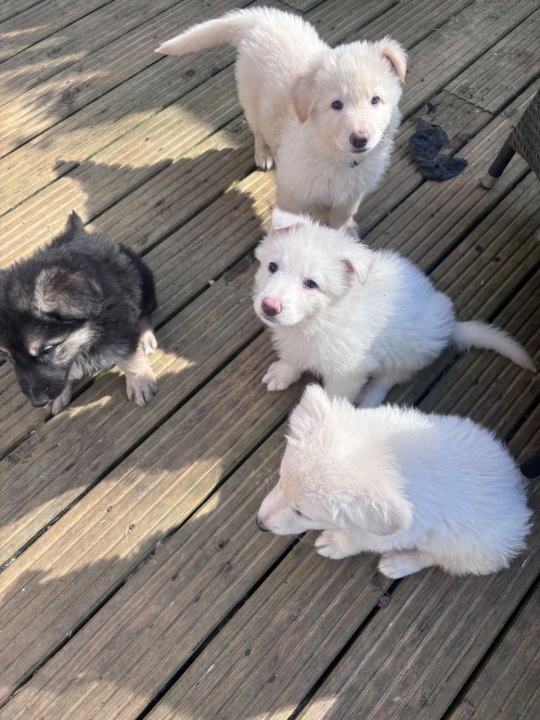 out off this incredible litter we only have 1 white boy left and available to leave for his forever home.