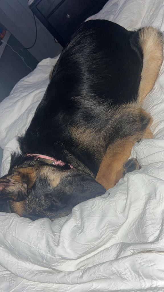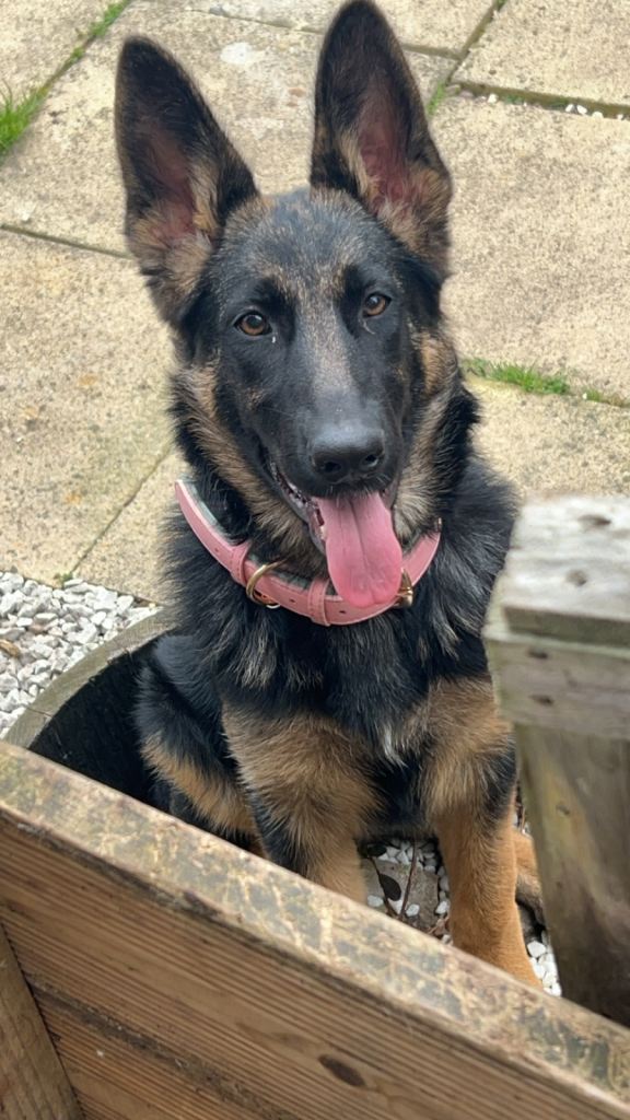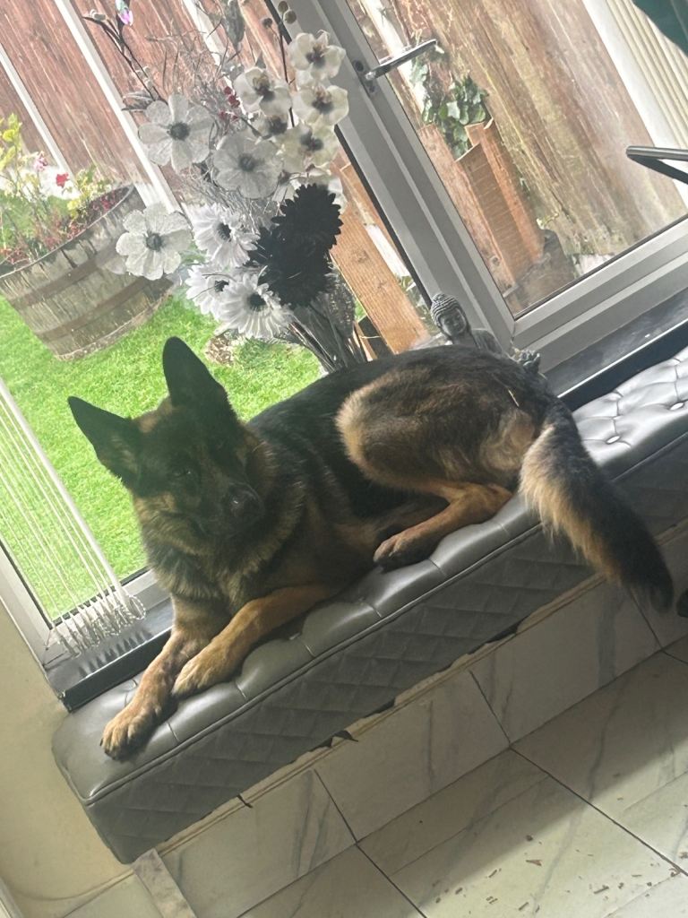 Loving German Shepherd for sale good with children very protective good guard dog loves to sleep on the bed house trained will let you know when she wants to go out or she’ll let herself out reason for sale is she’s to excited for my mum as she is a blind woman doesn’t really like other dogs and has bad anxiety for when my dad goes out she’ll wait outside crying until he gets back home! She’s very playful and active doesn’t go on walks as nobody can walk her! She a straight back and short hair German Shepherd she’ll come with 2 bowls a lead and harness and her toys be very sad to see her go