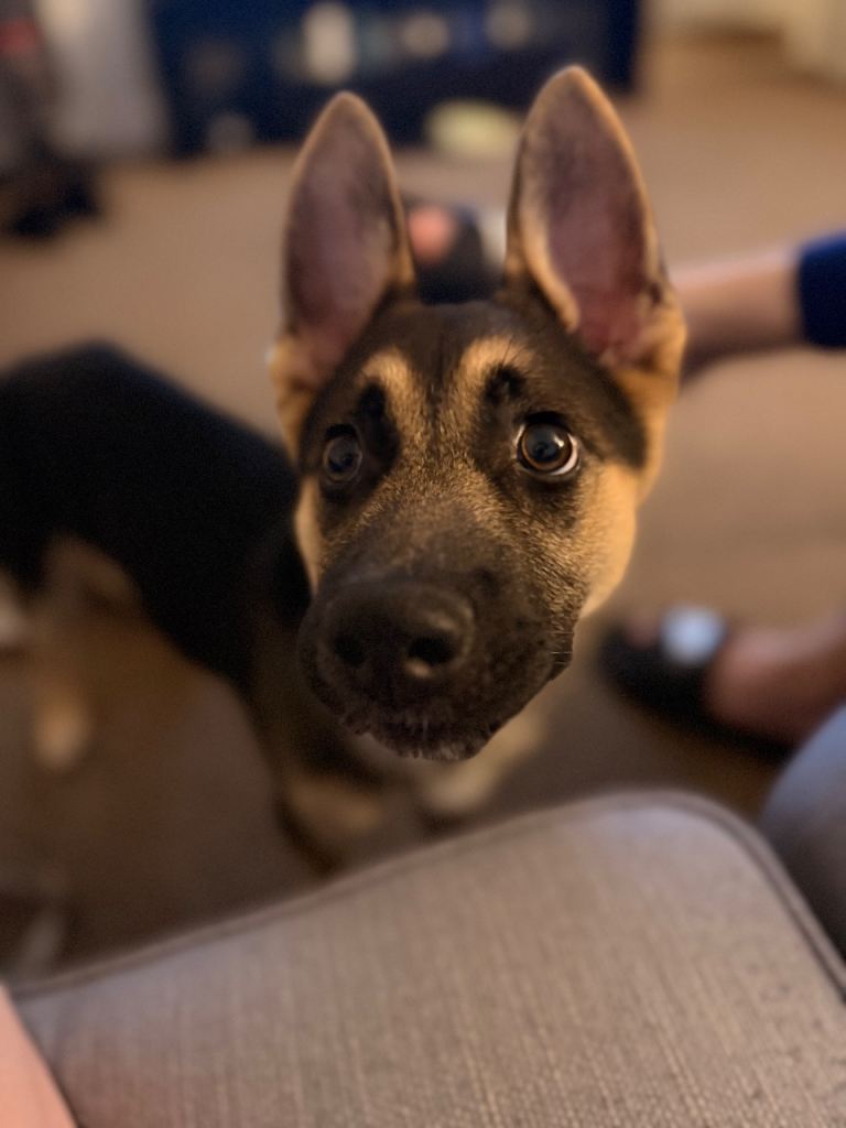 This is German shepherd cross Belgian malinois she’s 4 months old she is very energetic she’s so loveable loves to play but is also very compassionate she’s good with other dogs and cats and is good with children
