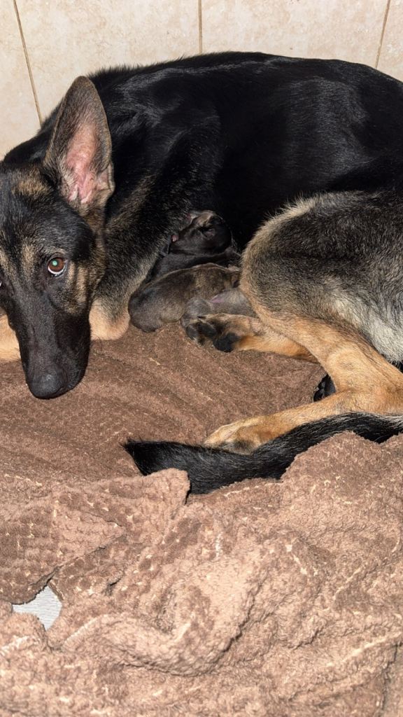 I had a litter of puppies that were completely unplanned. Mum is German Shepherd and dad is staffy x Rottweiler.