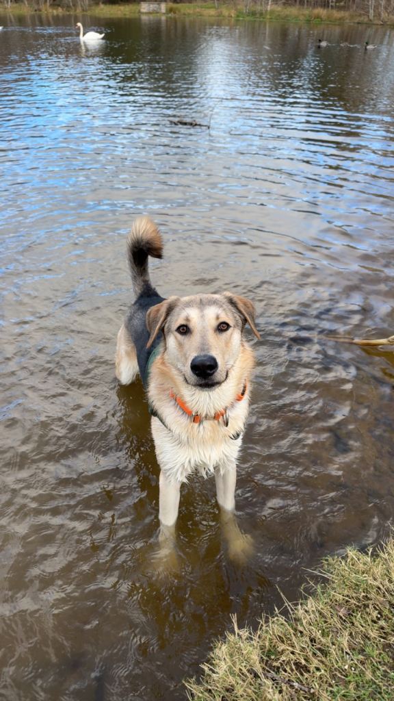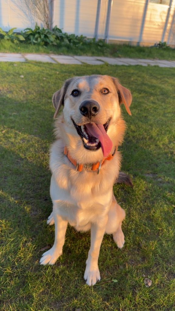 This is Exter, he’s a German Shepherd x Husky x Labrador, currently 1 year old (will be 2 in April). He weighs around 35kg and is a big, strong, affectionate boy.