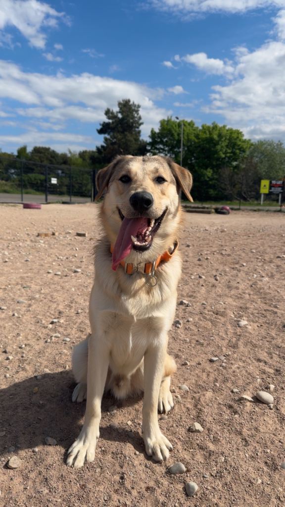Temperament — Friendly and loving with people (can be a little wary of some men at first, but is absolutely fine after a proper introduction). Good with other dogs and cats (currently lives with cats). Boisterous, playful and sometimes unaware of his size, so I’d prefer a home with older children only who understand boundaries, as he can get a bit mouthy when excited.