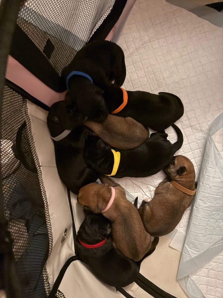 8 Labrador mix and German shepherd puppies for sale. 6 boys (2 tan, 3 black, 1 Black and Tan) and 2 girls (1 tan and 1 black).