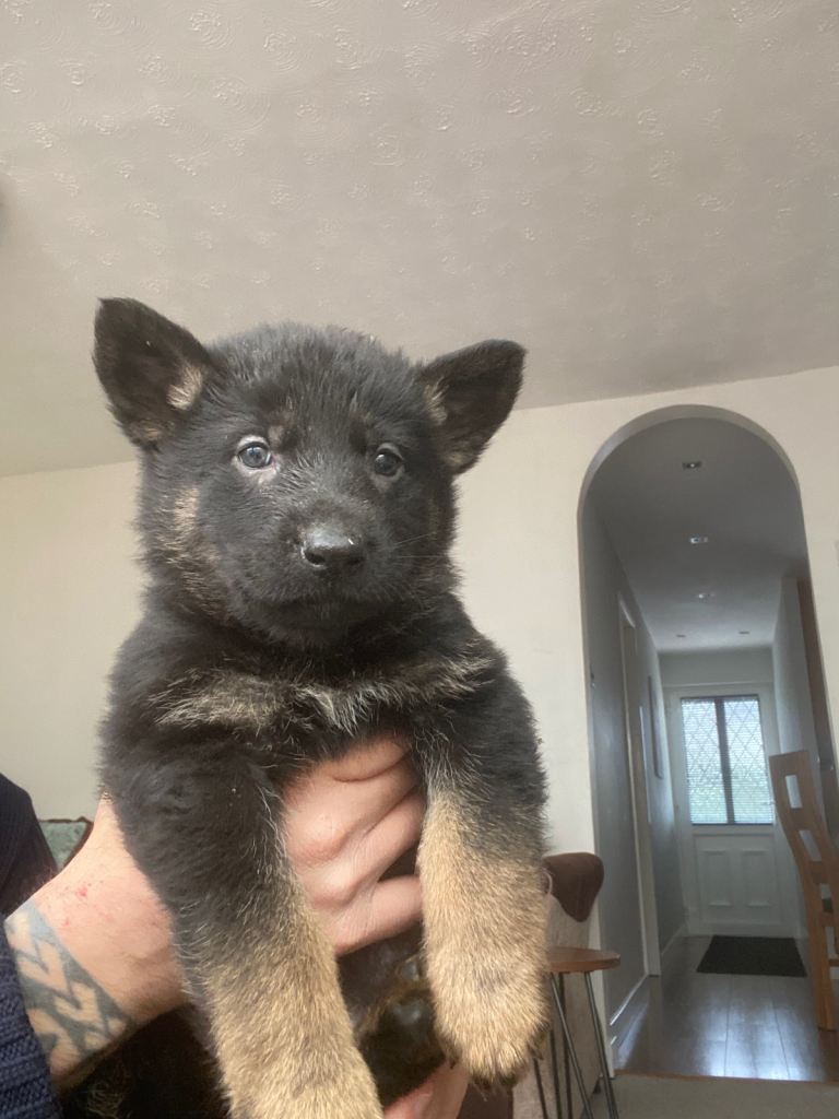 Here we have 8 fantastic German shepherd puppies waiting for their forever home, consisting of 6 males and 2 females. These fantastic puppies are well socialised and are very well handled and they are used to all household noise and living with other animals. they all have their own individual personalities these amazing pups are going to make great family dogs. the mum is a straight back, short hair black German shepherd all the way from Germany, she is K.C registered with a 50 year background family tree with certificate to show. She has a great temperament, calm, intelligent, family orientated dog. Fantastic with people and other dogs and animals. The dad is a straight back, 55kg long hair Black and Tan German shepherd also great temperament, calm, intelligent, family orientated dog. Fantastic with people and other dogs and animals. The puppies will be ready to go on the 11/03/26 deposit £500