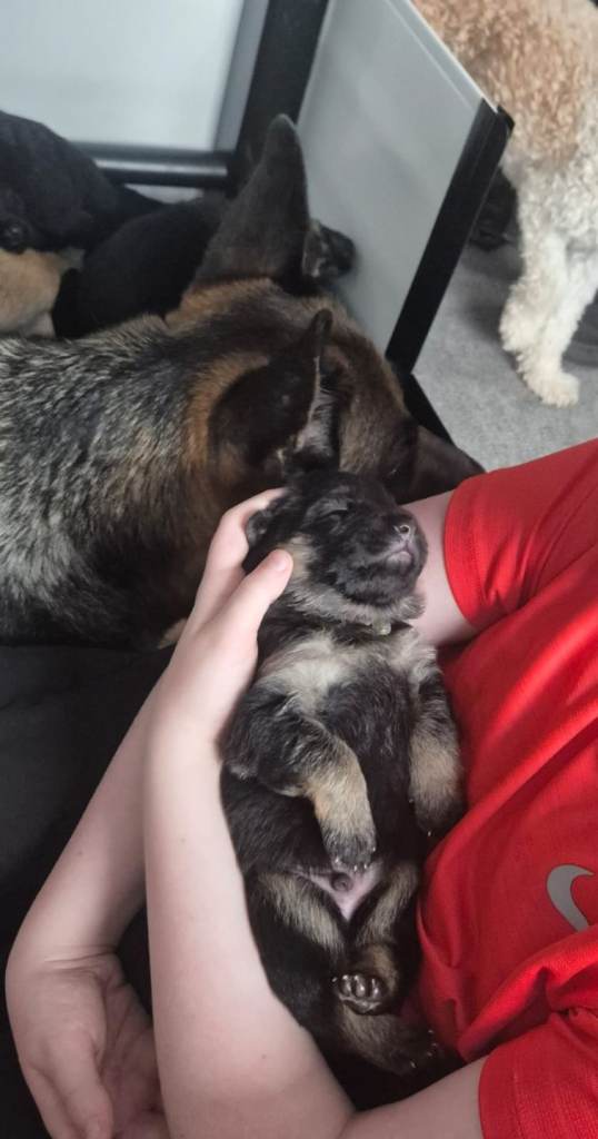 Mum and Dad have amazing gentle temperaments. They are both perfect example of their breed. Both parents are straight backed, and are in fantastic health! Puppies will be raised in our home.
