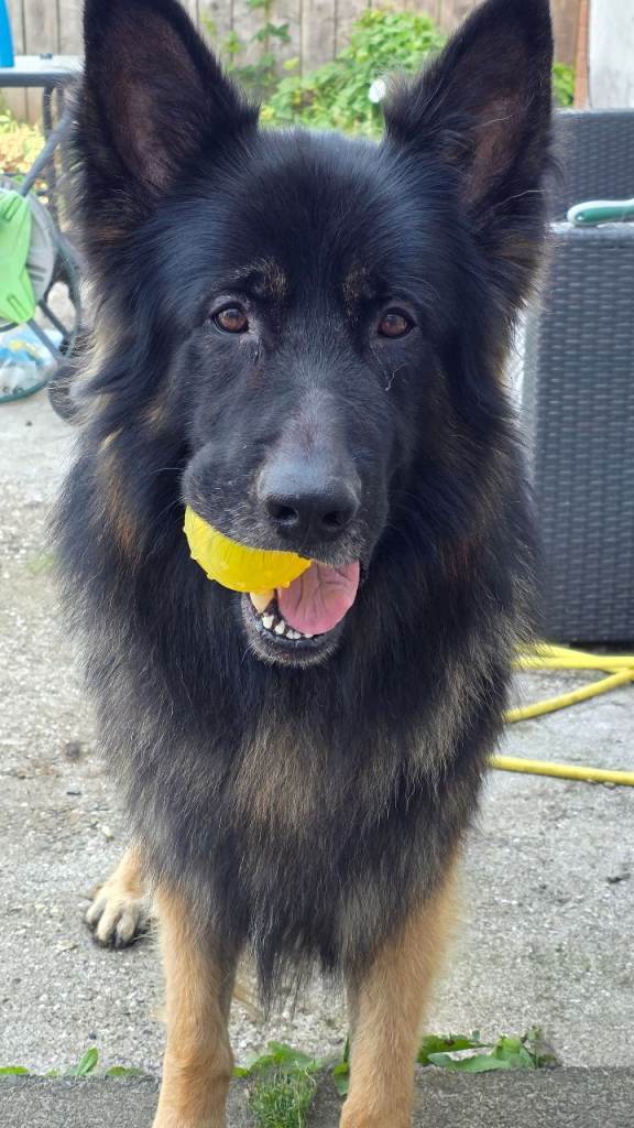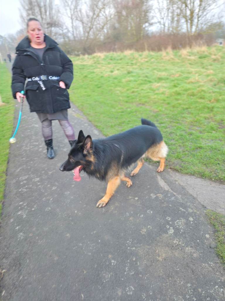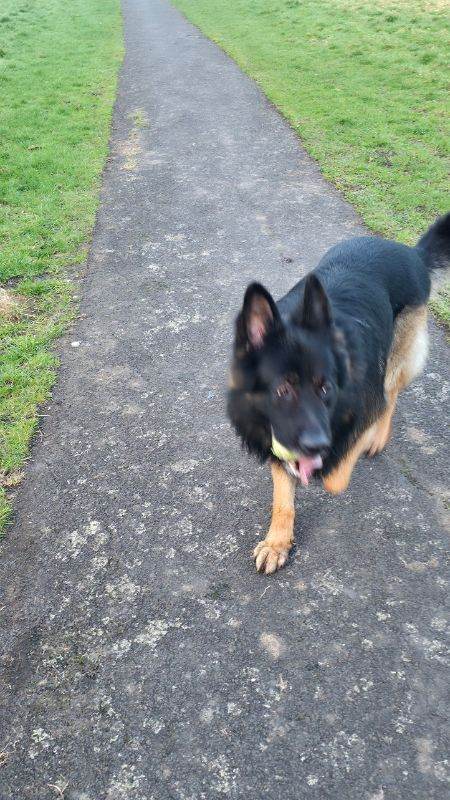 This is Harley he is 5yrs old. Weve had him since 8wks old. He lives with a teacup chihuaha female and my nearly 2yr old granddaughter. He loves cuddles and playing. It is with great sadness that our lives have changed and need to find a new loving home for him. He needs someone to take him for plenty of walks and exercise as he is full of energy. He does pull on the lead when first leaving the house but soon settles after playing ball. He gets on with other dogs outside and has great recall. Not sure about cats.