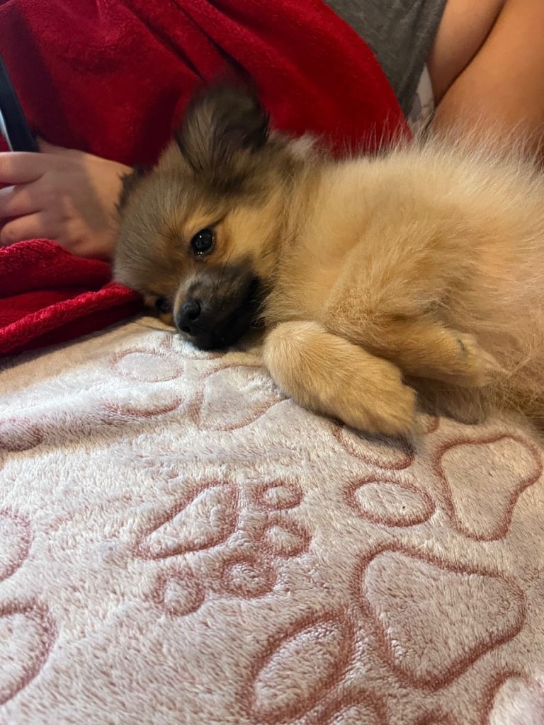 I'm selling my 9-week-old Pomeranian because my landlord doesn't allow dogs in the house, so I'm selling her. She's already had two vaccinations, and I bought her a week ago.