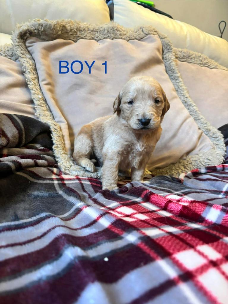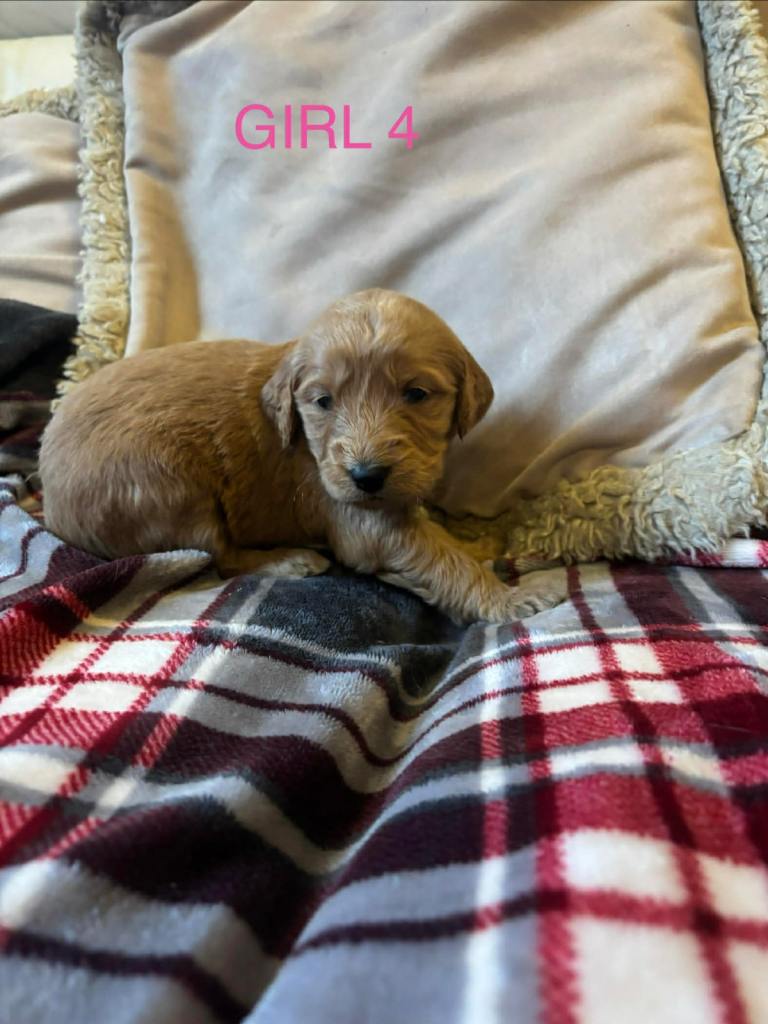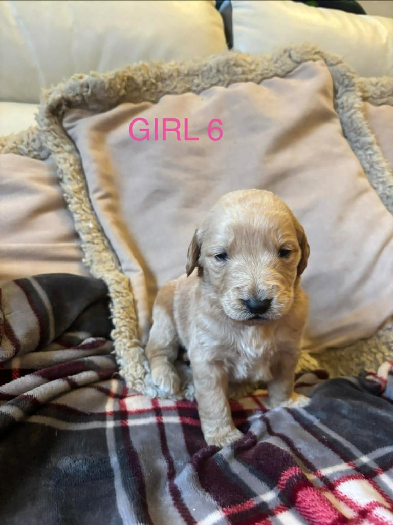 We have a stunning litter of golden doodle puppies looking for their forever homes,6 girls and 2 boys,mam is our goldie and dad is a friends poodle,they are being brought up with young children and other pets,viewing is highly recommended,they will be wormed,flead,microchipped,and potty trained before leaving,a non refundable deposit will secure a pup,viewing by appointment only, (boy 2 sold,girl 3 sold)