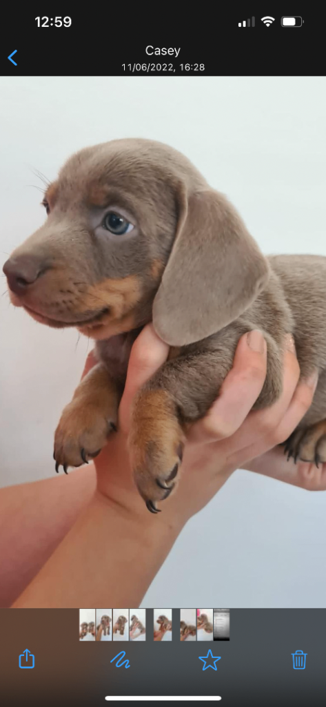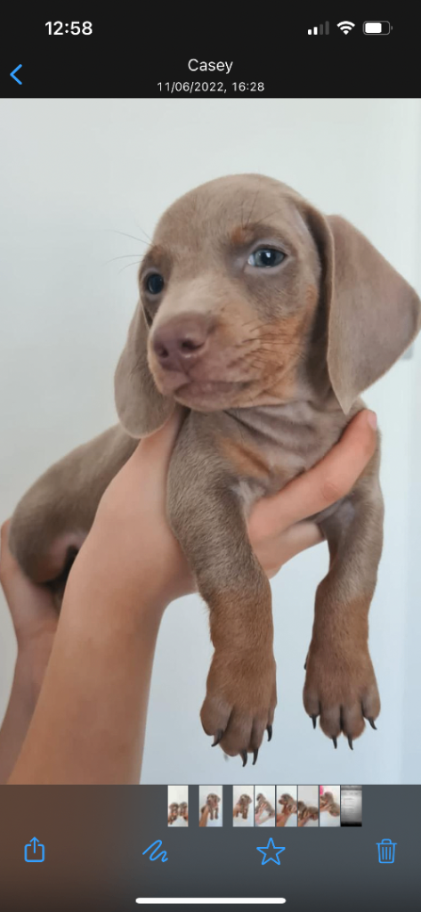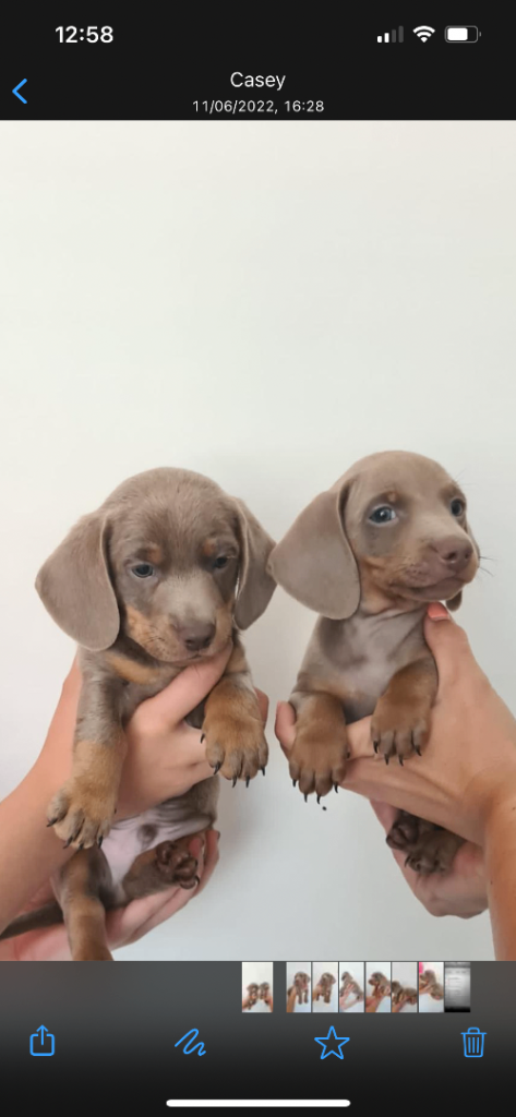 Our darling family pet, Eme, has had a beautiful mixed litter. We have for sale, Golden Lilac male and female puppies, as well as, a Charcoal Lilac male puppy, a Dapple Brown female puppy and a Dapple Silver/ White male puppy. They will be Vet checked, microchipped, de-wormed and deflead. They will come with their medical documentation. Puppies are all healthy, energetic and socialised, having lived in a busy family home with kids. Last pictures shows the dad, a Silver Dapple Miniature Dachshund, and mum, a Lilac miniature Dachshund, both our family pets.