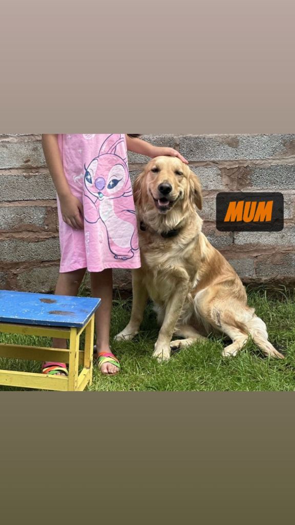 Mum is our much loved beautiful pet she is a pedigree golden retriever . She is very active with an amazing temperament , she’s like my daughter’s best friend.