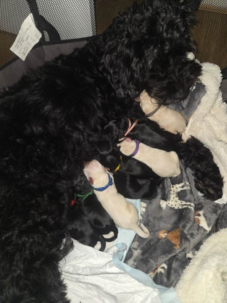 We have a litter of 7 Golden Retriever x BLack Cockapoo, born 2nd of June (1 black & 1 beige girl, 6 mix boys)