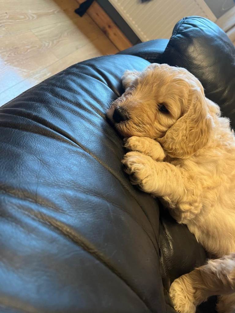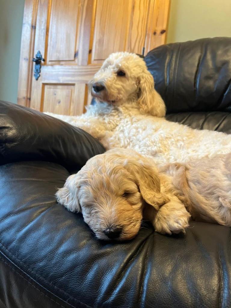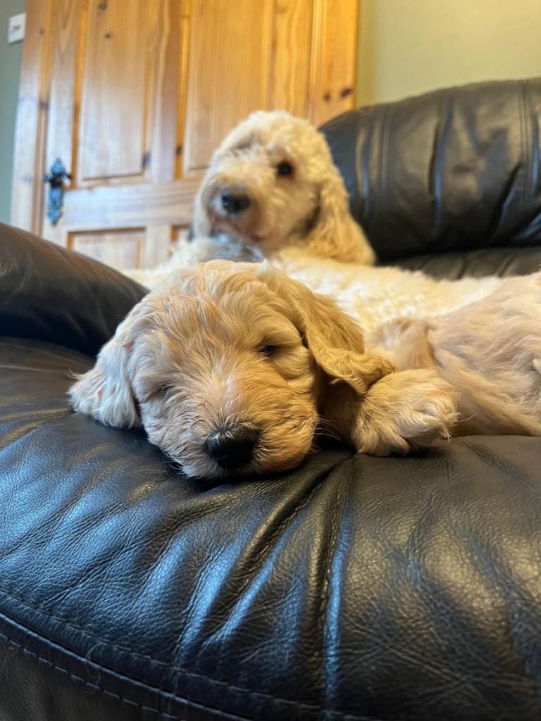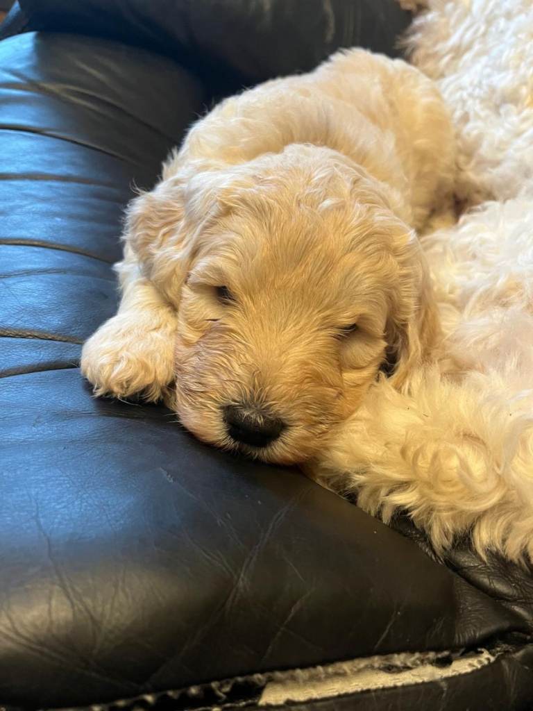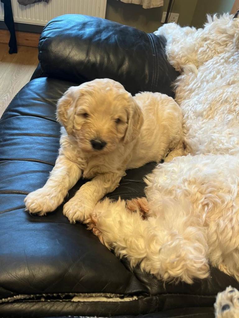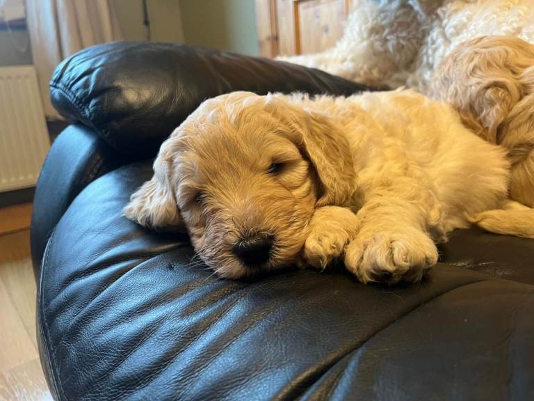 Our much loved goldendoodle bitch Meadow was carefully matched with a fully health tested purebreed poodle, resulting in a healthy happy litter of 5 puppies 3 male 2 female.