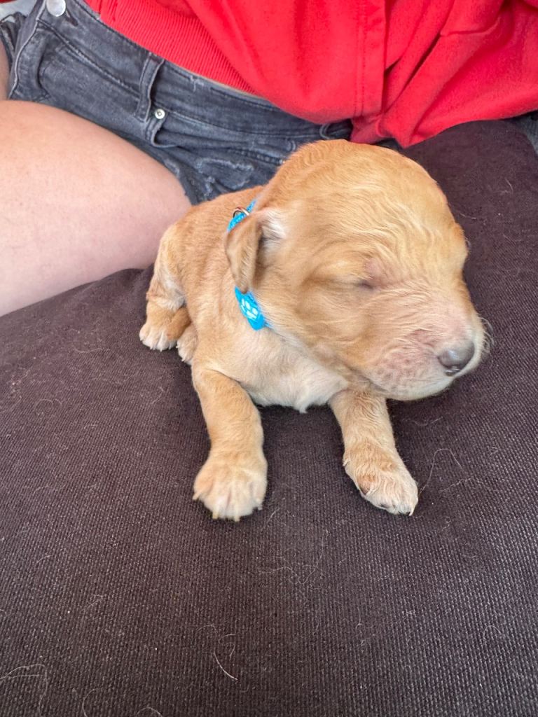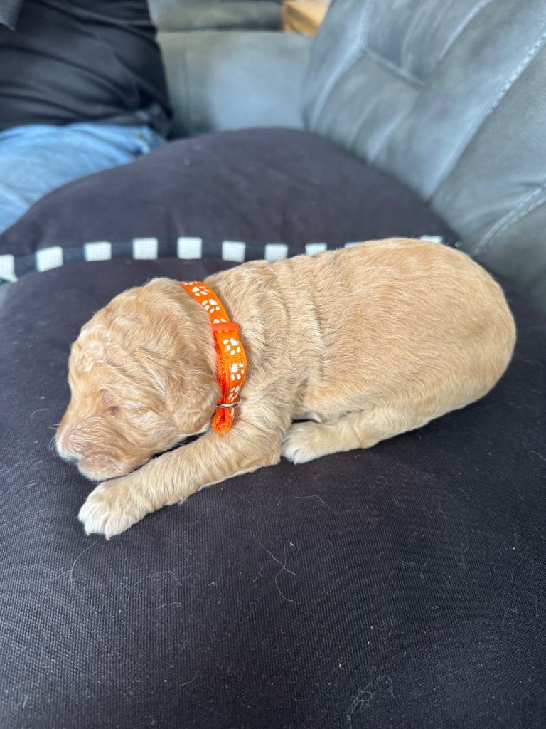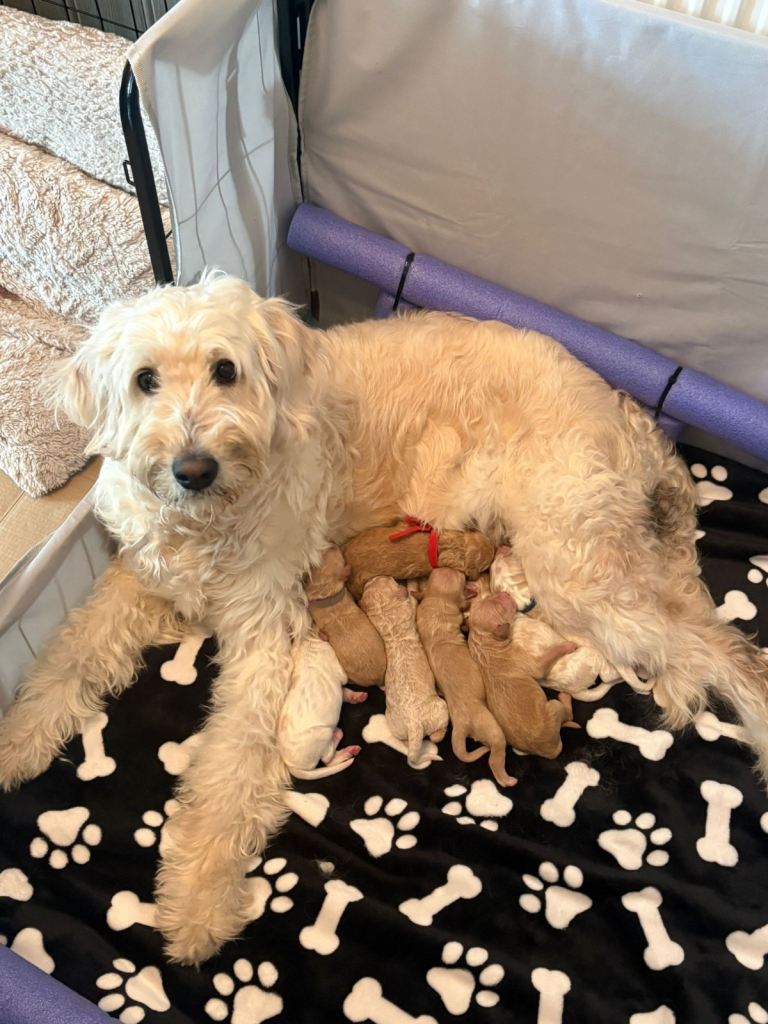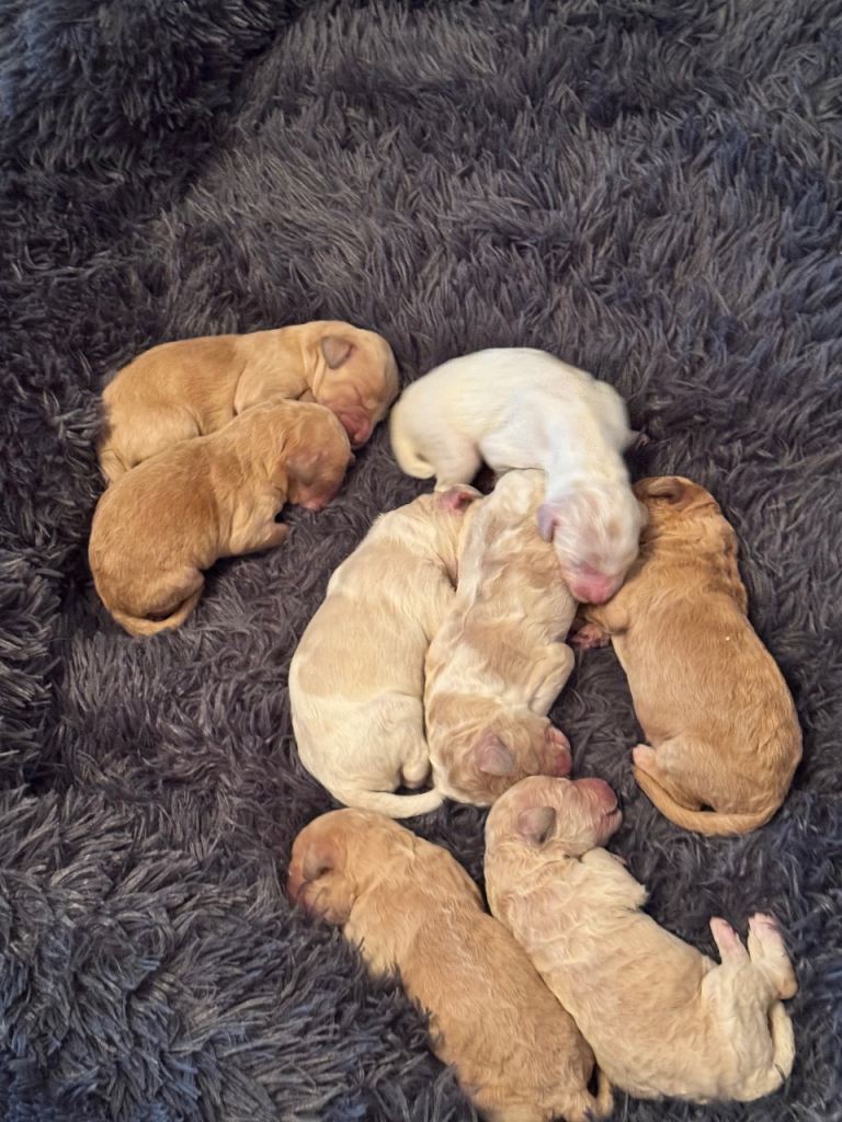 8 beautiful F1B Goldendoodle puppies born on 16 th April 2026. Mum Nala is our lovely girl. Dad is Thomas akc reg poodle. Both excellent health DNA tested. Puppies have been vet checked at 2days old. Puppies will be vaccinated,microchipped,wormed & checked by vet again before leaving. Puppy pack with all the essentials. To help settle puppy in their new home. Deposit of £300 is required to secure puppy of your choice. (Non refundable) Any questions please feel free to contact us. 6 boys. 2 girls Available.