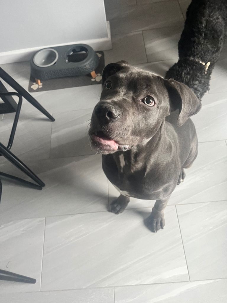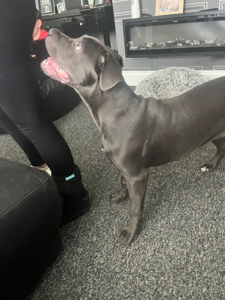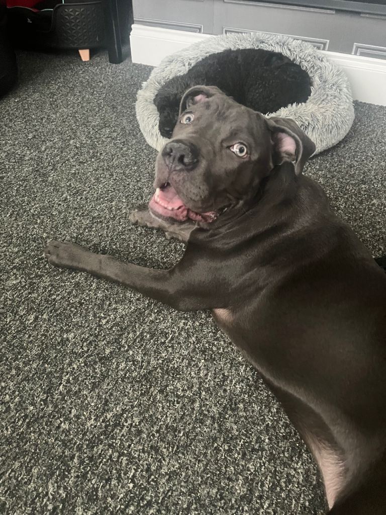 Gorgeous blue Cane Corso girl, 7 months old, vaccinations up to date, house trained, excellent with other dogs she is very submissive with them, great with people & older children my youngest is 8. She is so soft & loving natured, can be playful but soon settles so a home with younger children is not recommended only due to the fact she could knock a little one over due to her size. She’s a fast learner and eager to please. Shes crate trained sleeps all night in her crate no problem at all. We haven’t had her very long, one of my older dogs just won’t take to her the others are great with her. Such a shame but need to find this gorgeous girl a forever home as my older girl is becoming very upset. No time wasters loving home only please will consider sensible offers