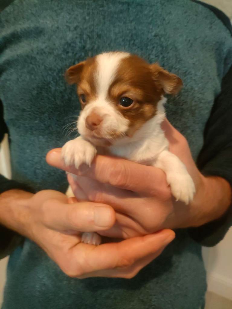 I have 6 beautiful chihuahua puppies. They are 4 weeks old and will be ready for new loving homes around mid February. Both mum and dad can be seen. The 2 white and brown ones are boys and the others are girls. They will be microchipped at 8 weeks old. They are starting to eat kibble and wee on puppy pads. The boys are £750 and the girls are £850. Vaccination to be discussed with potential buyer due to area and compatibility to 2nd vaccine. Recommended by vet. A £200 deposit would be required for security. I am only willing to let these little beauties go to very loving homes.
