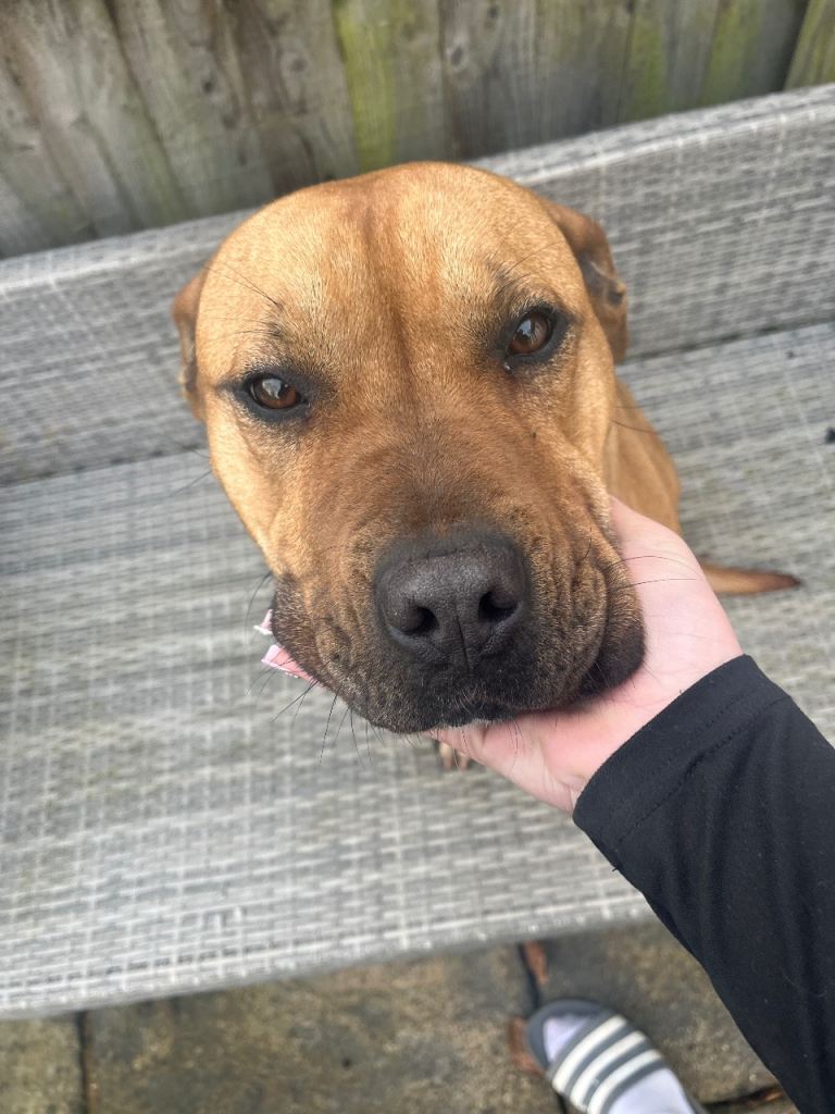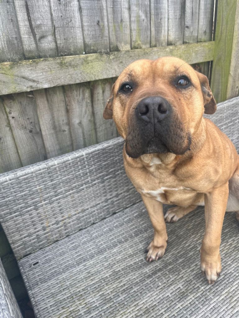 Here is gypsy a beautiful 2 year old girl she friendly with children and is an absolute softy she loves attention and loves to play I really don’t want to have to sell her but our landlord does not allow dogs in the house and she’s currently having to stay in an outdoor kennel so I would like her to be rehomed asap to a loving home that will look after her