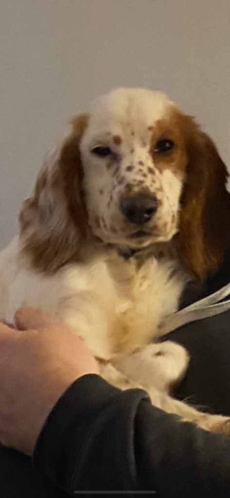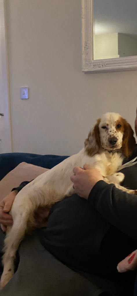 Hi unfortunately we are having to find a new home for our 1 year old male lemon roan cocker spaniel, he’s extremely loving, walks well on the lead, good around children etc.
